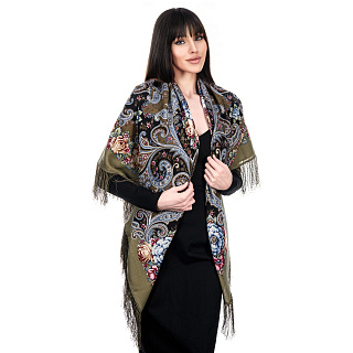 Платок ПавлоПосадский шерстяной «Таинственный образ» 125х125 см