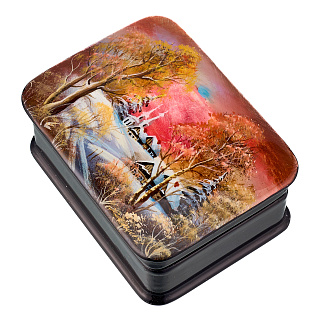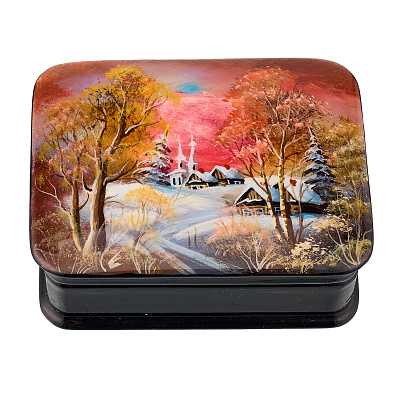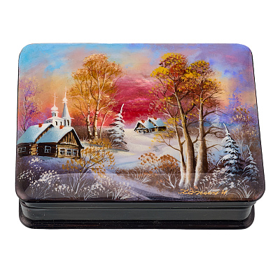 Шкатулка из папье-маше с художественной росписью «Зима в деревне»