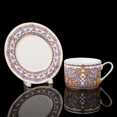 Кофейная пара с позолотой и эмалью «Орнамент». Златоуст