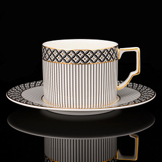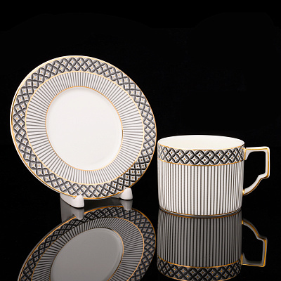 Кофейная пара с позолотой и фианитами «Герб РФ». Златоуст