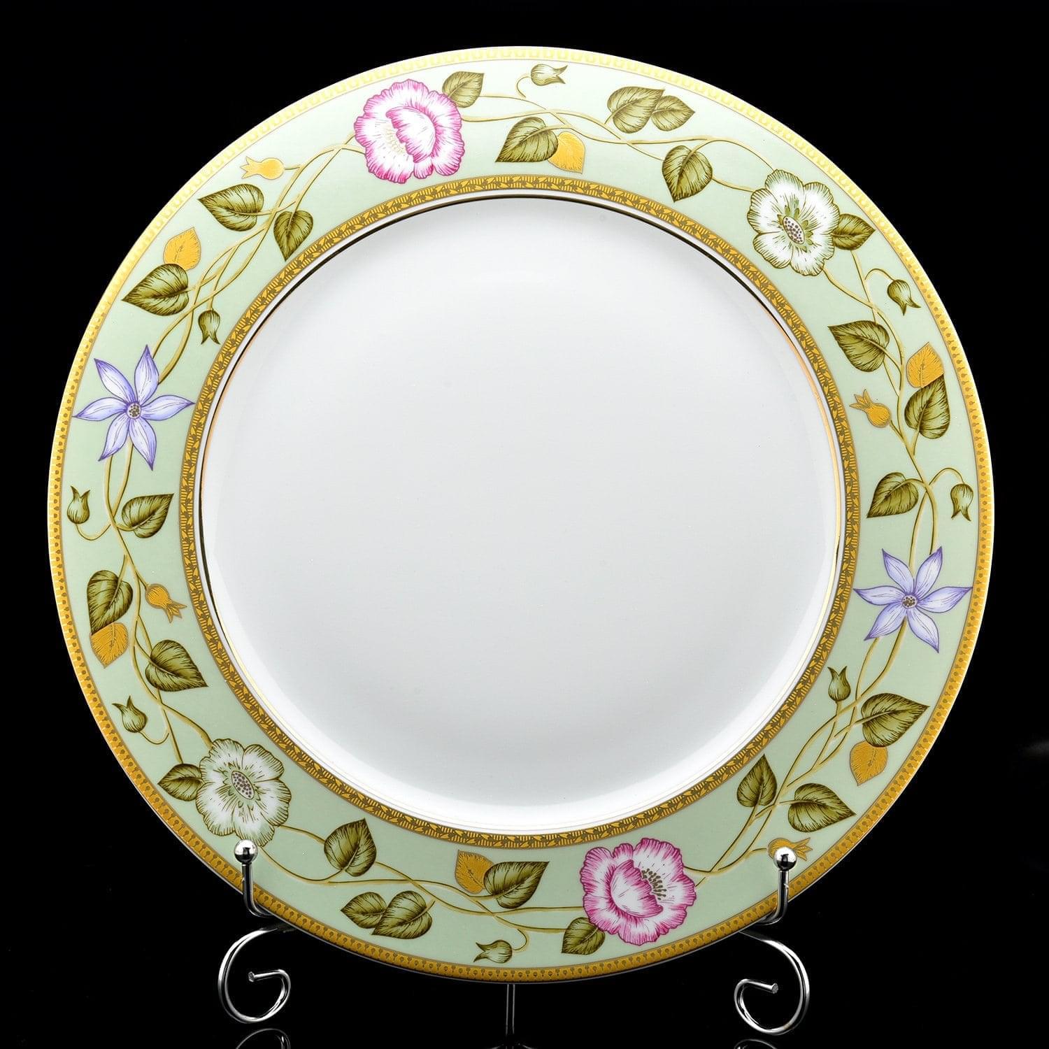 Блюдо «Нефритовый Фон» расписано в технике надглазурной живописи с ручной доделкой красками. Борт на нефритовом фоне украшает гирлянда из золотых листьев с цветами. Нижняя часть декорирована золотым орнаментом, по краю проходит двойная отводка золотом. Автором рисунка является художник Императорского Фарфорового завода Л.Г. Леввович. Посуда выпускается на знаменитом предприятии, существующем с 1744 года, с 2012 года. Форма: Европейская-2. Рисунок: «Нефритовый фон». Эксклюзивная авторская работа. «Артикул завода изготовителя: 80.85354.00.1».