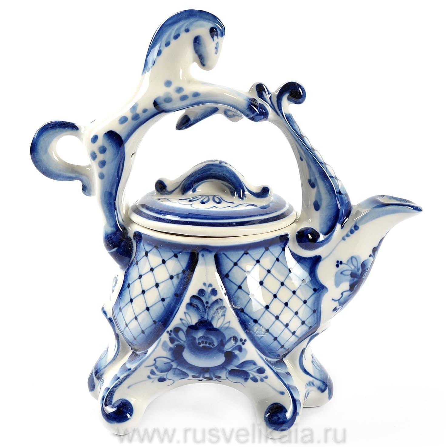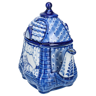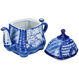 «Гжельский куст» из 30 деревень производит с 17 века гжельские предметы утвари из добываемой глины. Изначально здесь делали кирпич, трубы, игрушки. Число гжельских фабрик росло, династии создавали «алхимическую посуду». Живописцы использовали синюю, коричневую, желтую краски, предпочитая растительные орнаменты, бытовые сюжеты, фольклорные мотивы, популярные по сей день. Фарфоровое предприятие П. Куликова способствовало массовому производству Гжели. Промысел разрушили, но с середины 20 века специалисты реанимировали народное искусство. Художник Н.И. Бессарабова основала школу по обучению ремеслу, неповторимый гжельский стиль. Сервировку стола гжельской посудой предпочитают многие представители власти во главе с президентом России Владимиром Путиным. Гжель давно стала символом страны, знаком качества, ярким художественным образом. Автор узора чайника - Сергей Исаев, участник всероссийских персональных выставок, член союза художников России с 2000 года. В часах, скульптурах, кружках, штофах Сергей Владимирович воплощает сюжеты природы и времен года, сценки городской жизни и быта, деревенские пейзажи, персонажей из русских сказок.