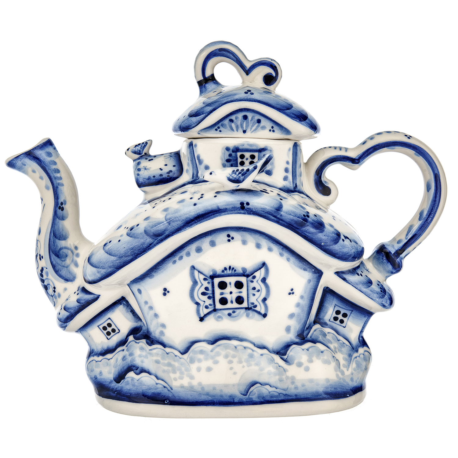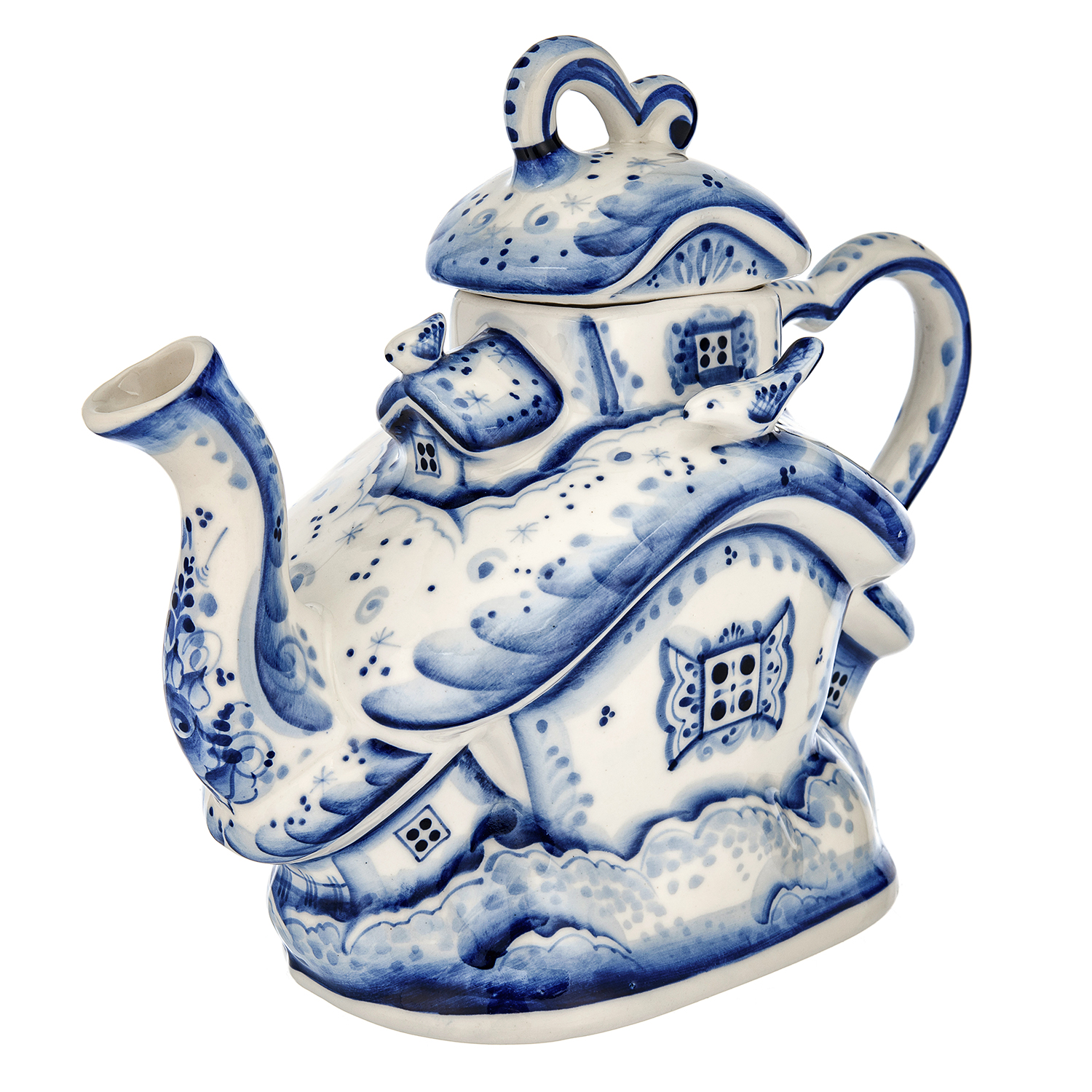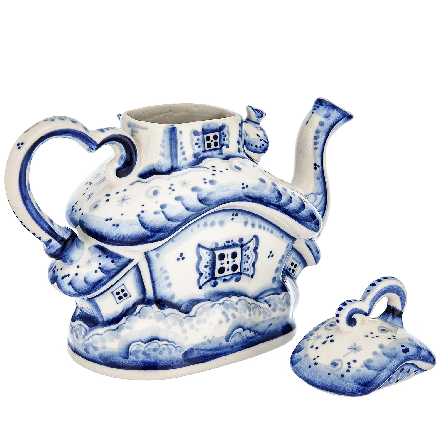 «Гжельский куст» из 30 деревень производит с 17 века гжельские предметы утвари из добываемой глины. Изначально здесь делали кирпич, трубы, игрушки. Число гжельских фабрик росло, династии создавали «алхимическую посуду». Живописцы использовали синюю, коричневую, желтую краски, предпочитая растительные орнаменты, бытовые сюжеты, фольклорные мотивы, популярные по сей день. Фарфоровое предприятие П. Куликова способствовало массовому производству Гжели. Промысел разрушили, но с середины 20 века специалисты реанимировали народное искусство. Художник Н.И. Бессарабова основала школу по обучению ремеслу, неповторимый гжельский стиль. Сервировку стола гжельской посудой предпочитают многие представители власти во главе с президентом России Владимиром Путиным. Гжель давно стала символом страны, знаком качества, ярким художественным образом. Автор узора чайника - Сергей Исаев, участник всероссийских персональных выставок, член союза художников России с 2000 года. В часах, скульптурах, кружках, штофах Сергей Владимирович воплощает сюжеты природы и времен года, сценки городской жизни и быта, деревенские пейзажи, персонажей из русских сказок.
