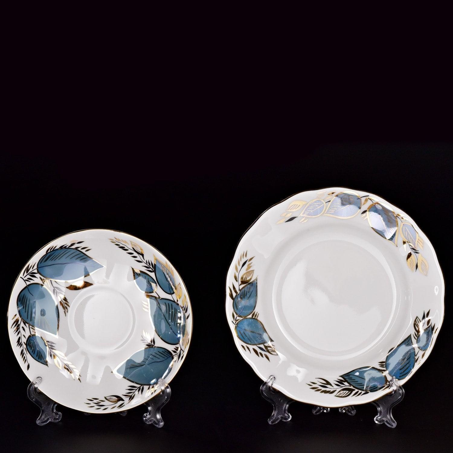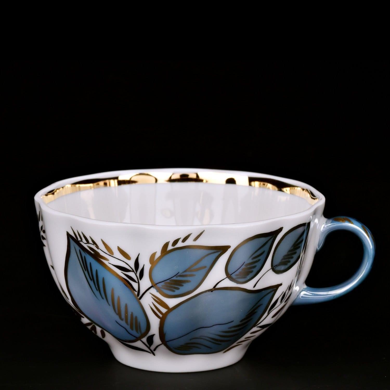 Эта элегантная чайная тройка придаст особый вкус любимому горячему напитку. Чашка и блюдца изготовлены из твердого, не пористого фарфора, который отличается глубоким и насыщенным цветом. Форма чашки называется "Майская". Оформление выполнено в технике подглазурной росписи в технике деколь (изображение перенесено на фарфоровую поверхность с бумаги); эффектная позолота нанесена тонкой кистью поверх защитных слоев прозрачной стеклянной глазури. Авторская работа, чайный комплект "Лунный"- это оригинальный и романтический подарок для женщины любого возраста на зимний или весенний праздник, на День рождения, именины, 14 февраля, 8 марта или новоселье, общий или личный праздник.