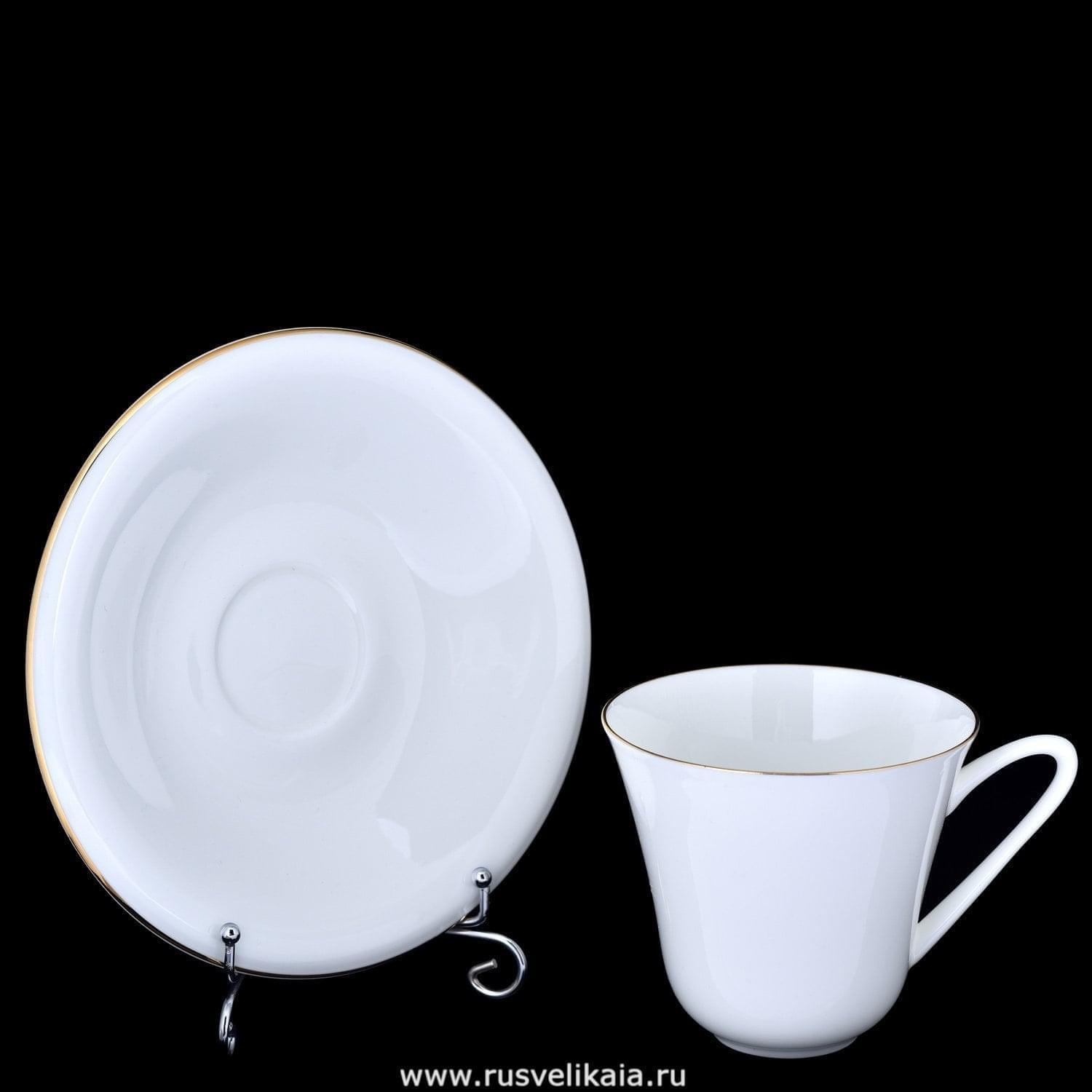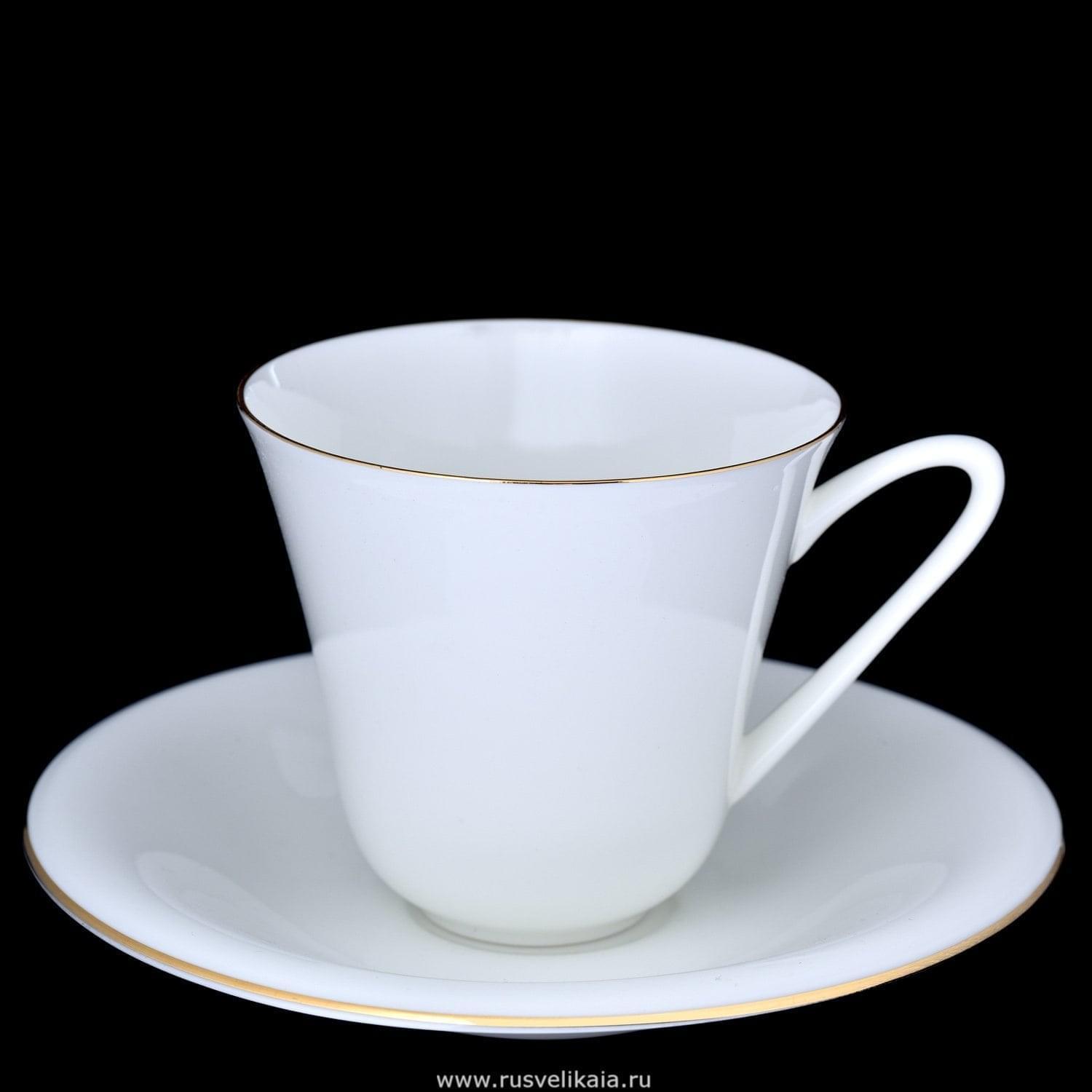 Классический чайный ансамбль с минималистичным дизайном изготовлен из тонкостенного костяного фарфора в соответствии со старинными традициями Императорского фарфорового завода. Декор чайной пары выполнен вручную с использованием золота, белизна подчеркнута золотой каймой. Рисунок «Золотой кантик» исчерпывающий и стильный. Форму «Сад» придумал художник росписи по фарфору Екатерина Сазонова. Роспись в технике отводка золотом привлекает внимание. Выпускается ансамбль с 1971 года, и за почти полвека стал хитом продаж. включая приемные президентов, уполномоченных представителей, коллекционеров фарфора разных стран. Изделие Императорского фарфорового завода (ИФЗ/ЛФЗ). Форма: Сад. Рисунок: Золотой кантик.