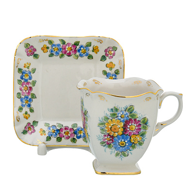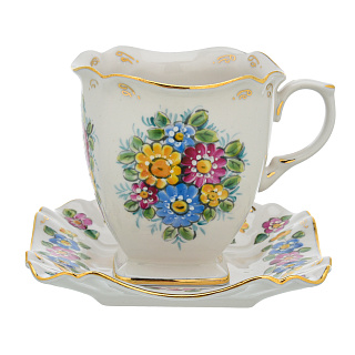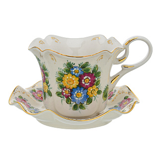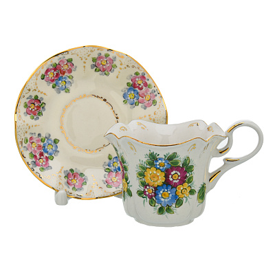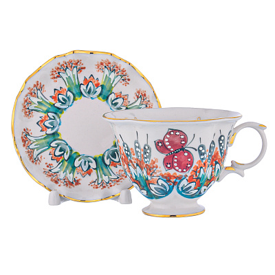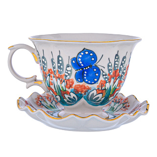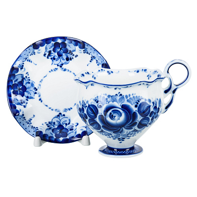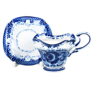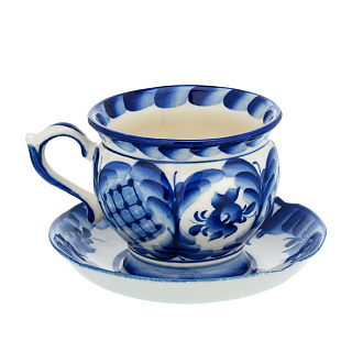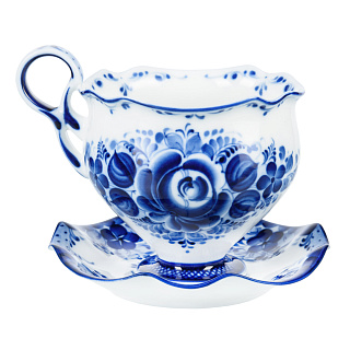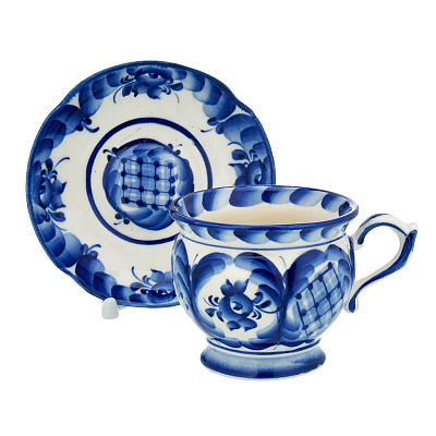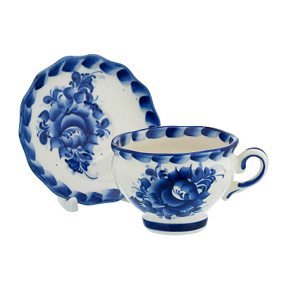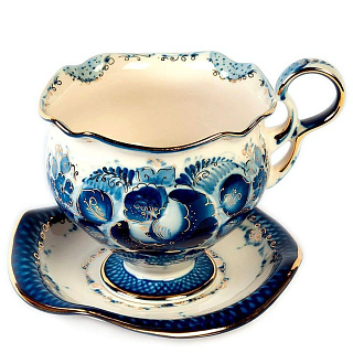 Чайная пара «Лягушка». Гжель в цвете и золоте
