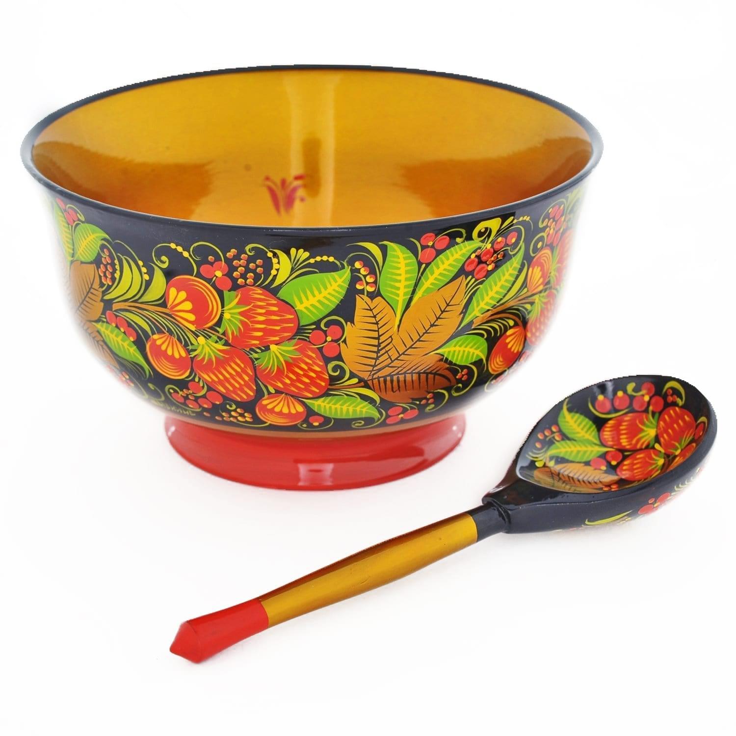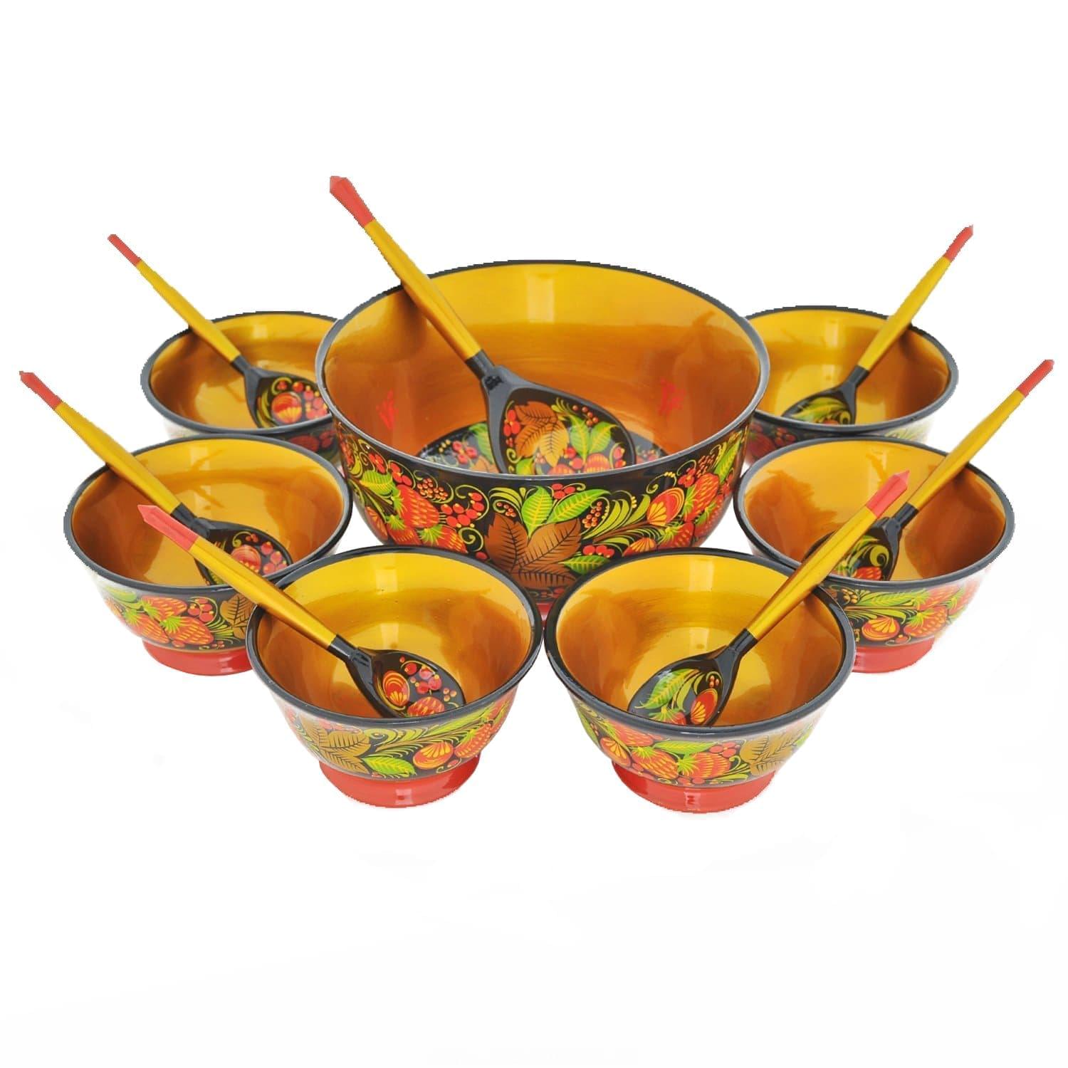 Набор для ягод (14 предметов) Хохлома ручной работы - аутентичная композиция для интерьера.