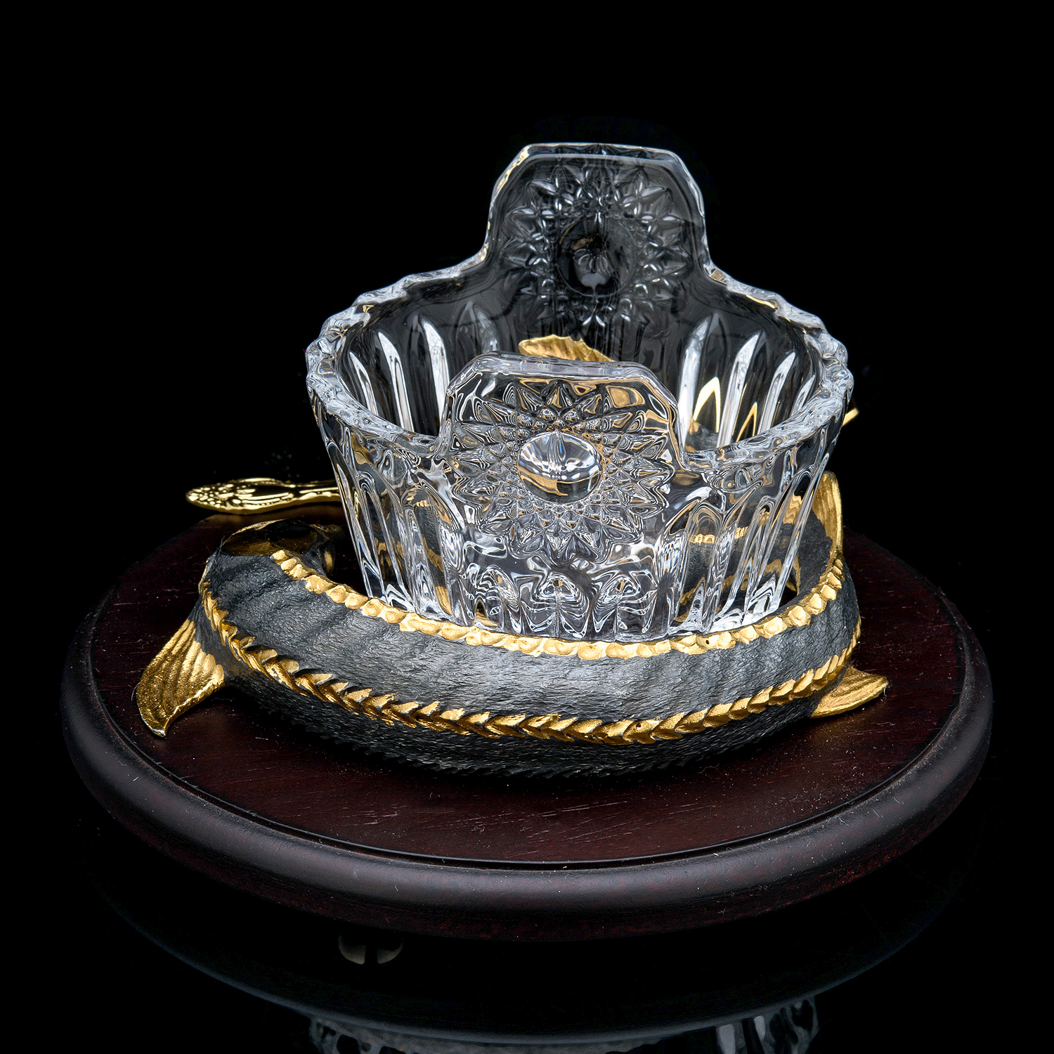 Материалы: латунь, никель, золото 999,9*, хрусталь, дерево.