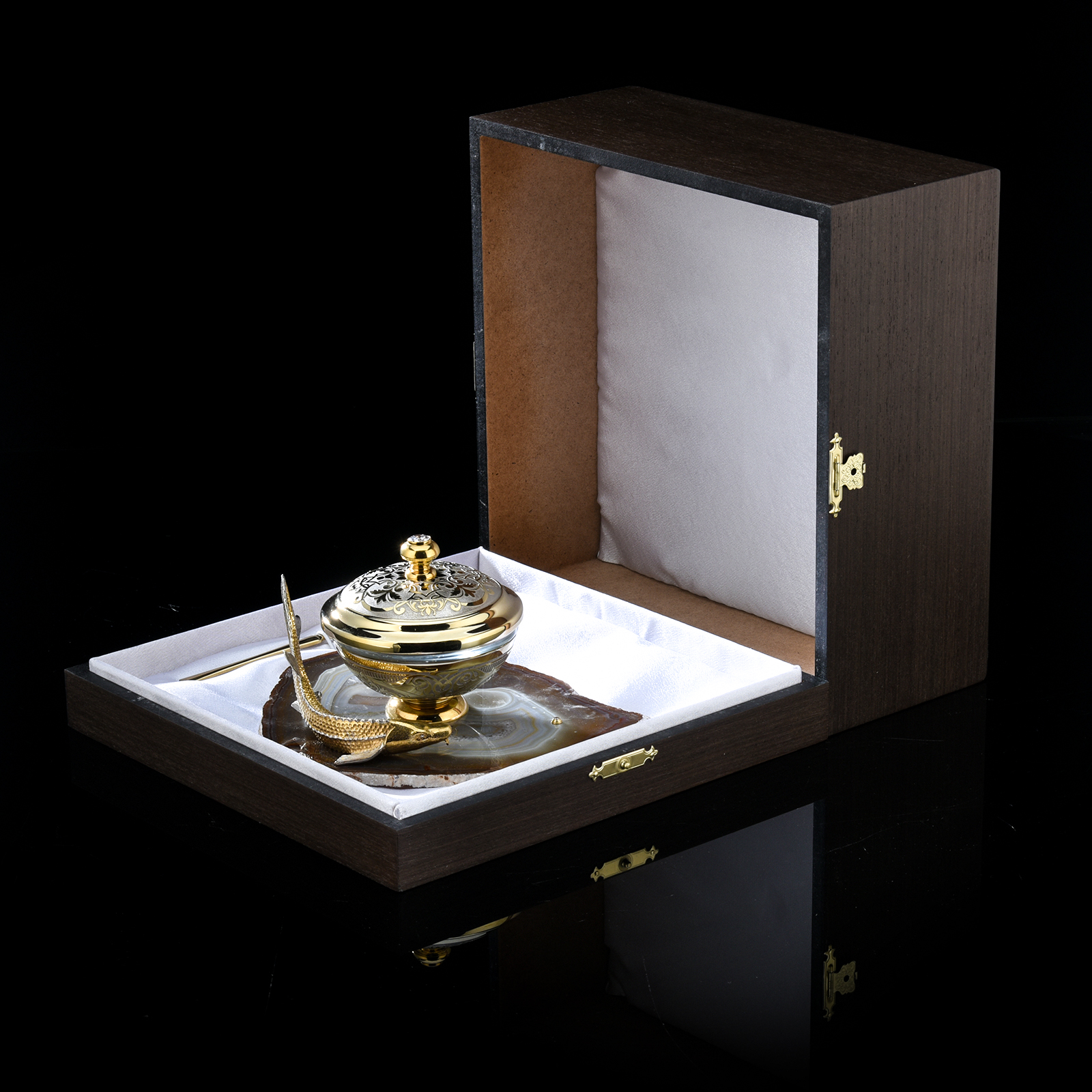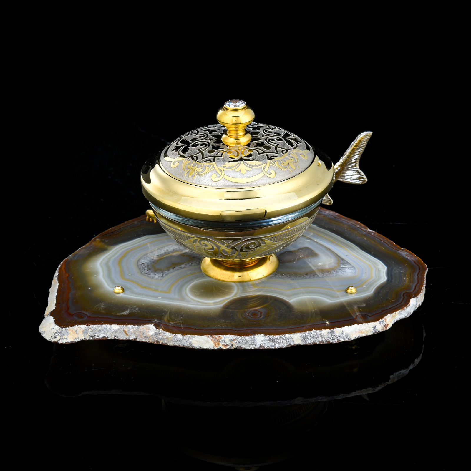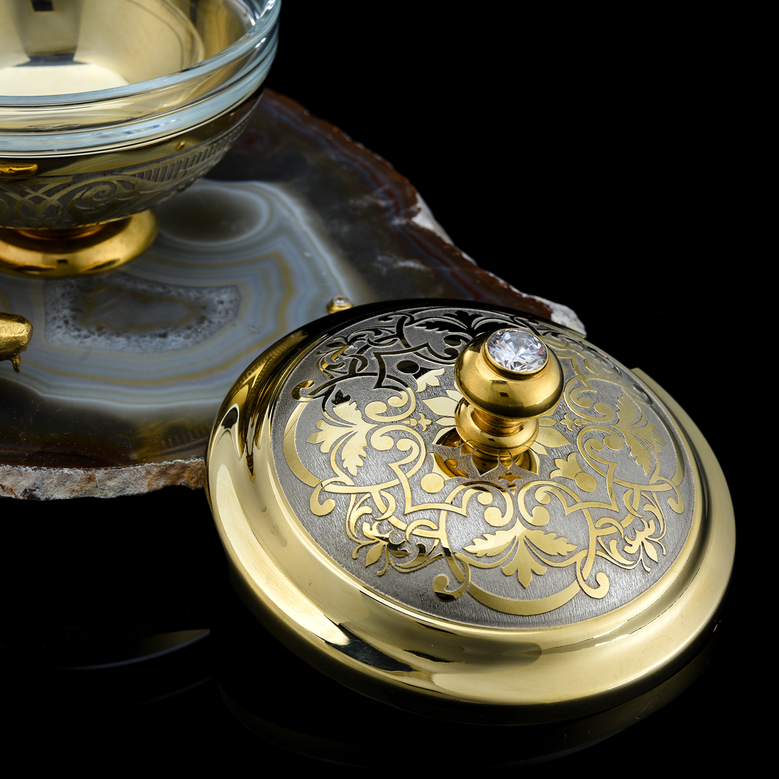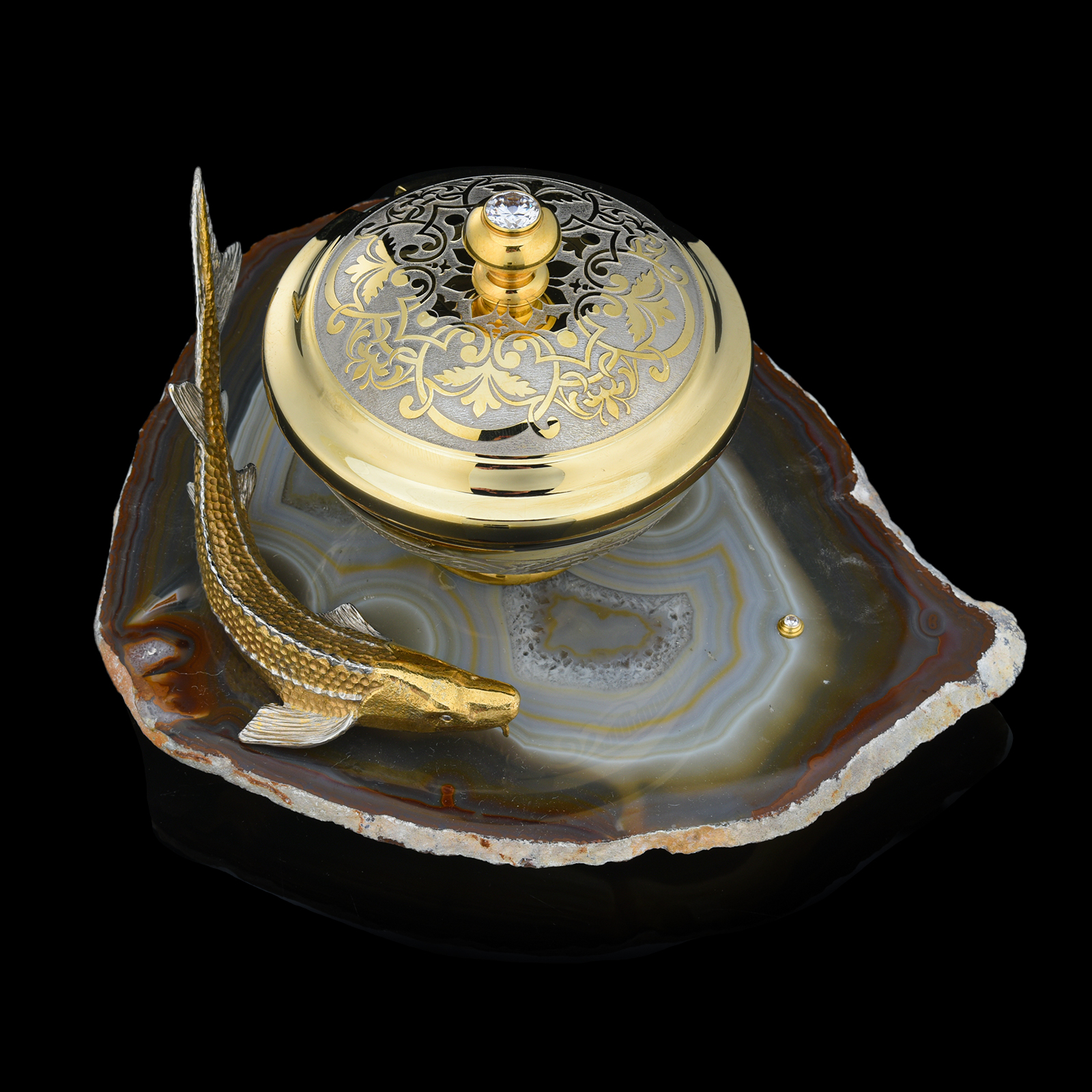 Материалы: латунь, никель, золото 999,9*, агат, стекло.
