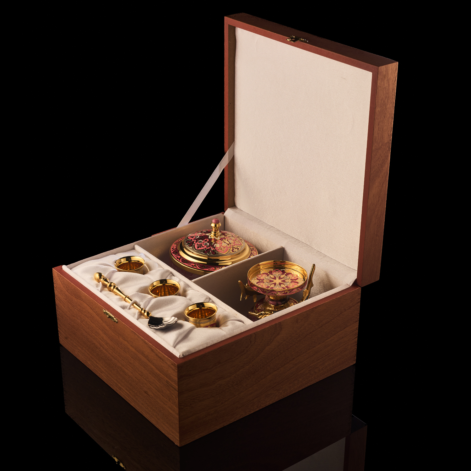 Кубок «Георгий Победоносец с гербом РФ» в подарочной шкатулке из дерева