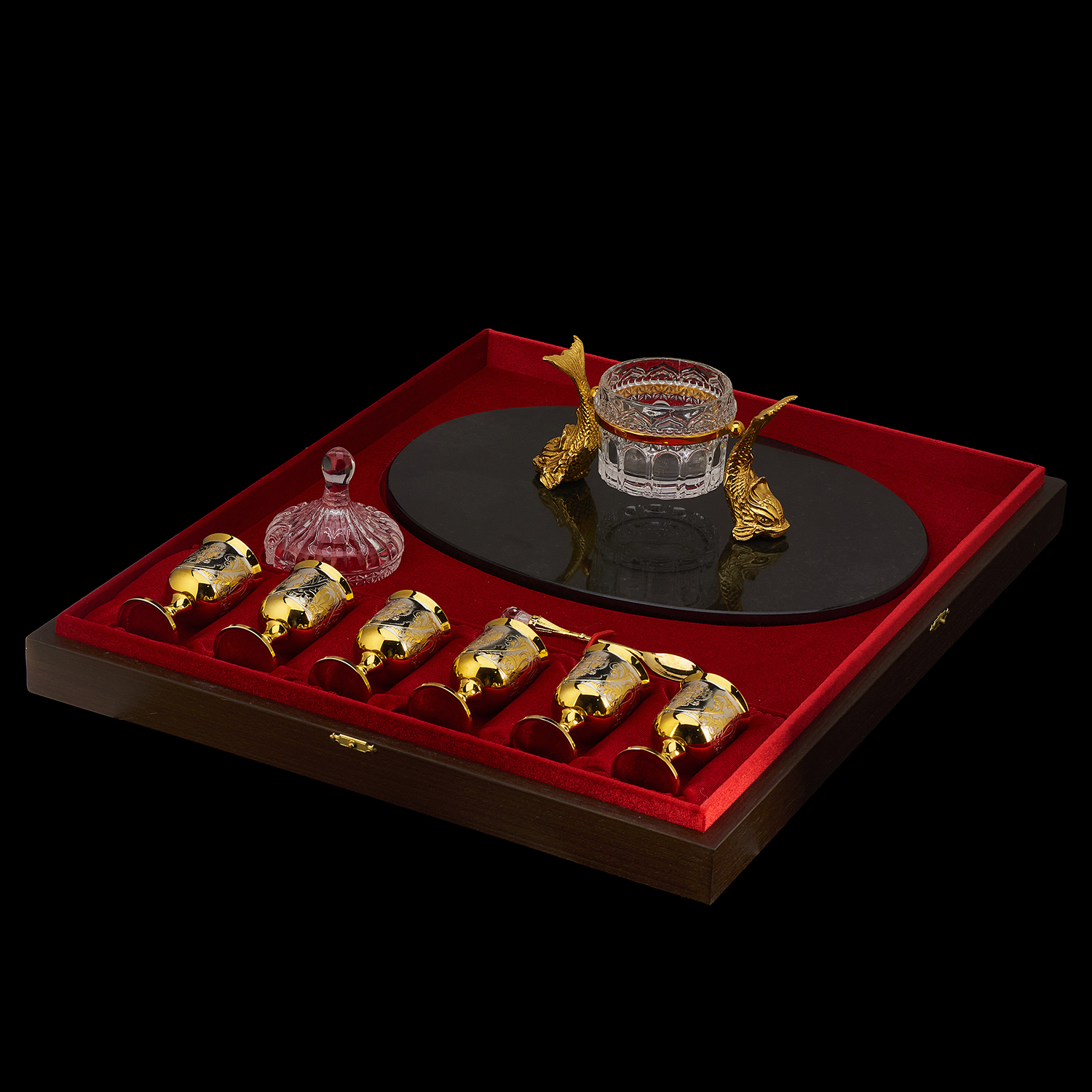 Икорница со стопками "Рыба-кит". Златоуст.