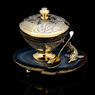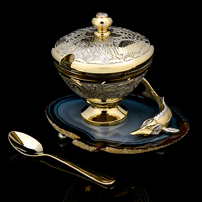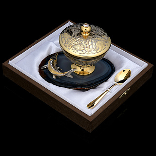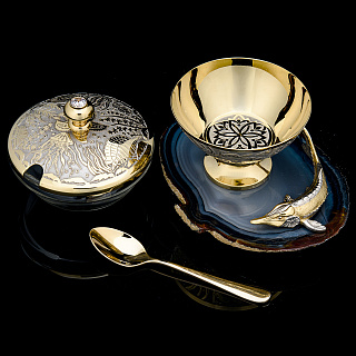 Питейный набор с икорницей «Купец с осетром». Златоуст