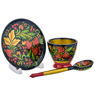 Набор деревянной посуды для кофе с росписью. Хохлома