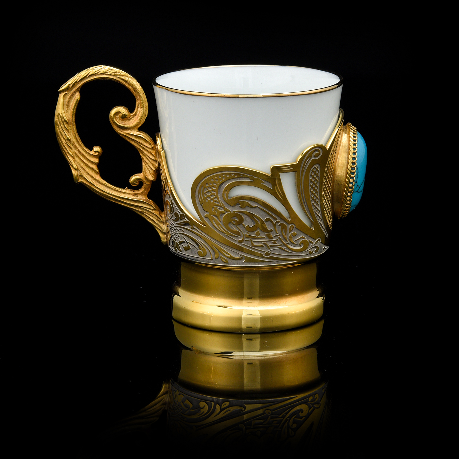 Материалы: латунь, никель, золото 999,9*, бирюза, фарфор.