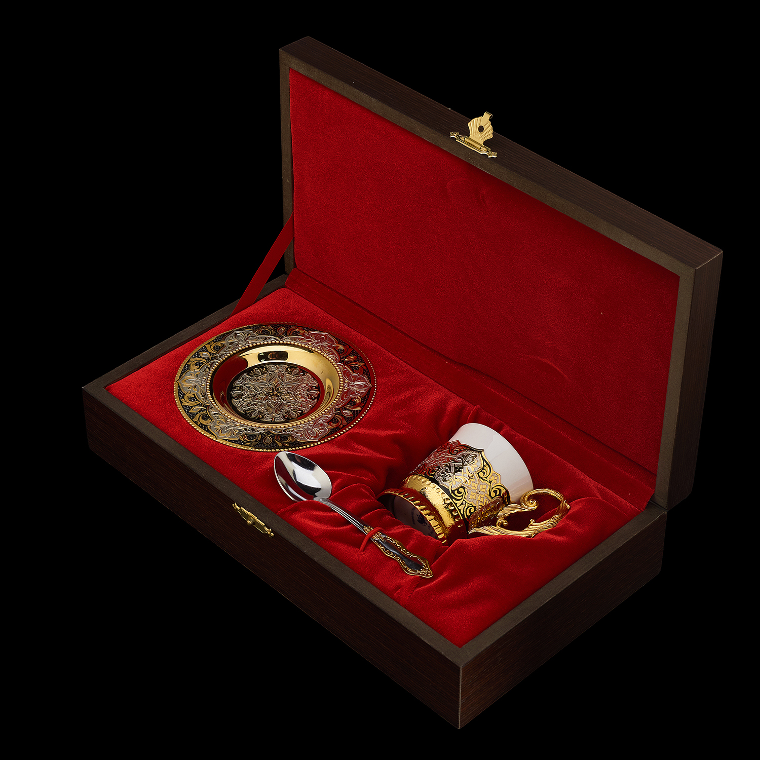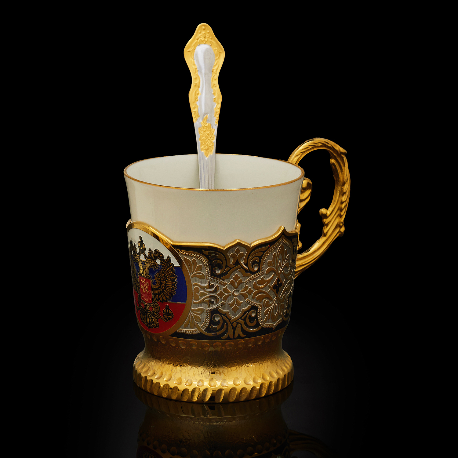 Кубок «Георгий Победоносец с гербом РФ» в подарочной шкатулке из дерева