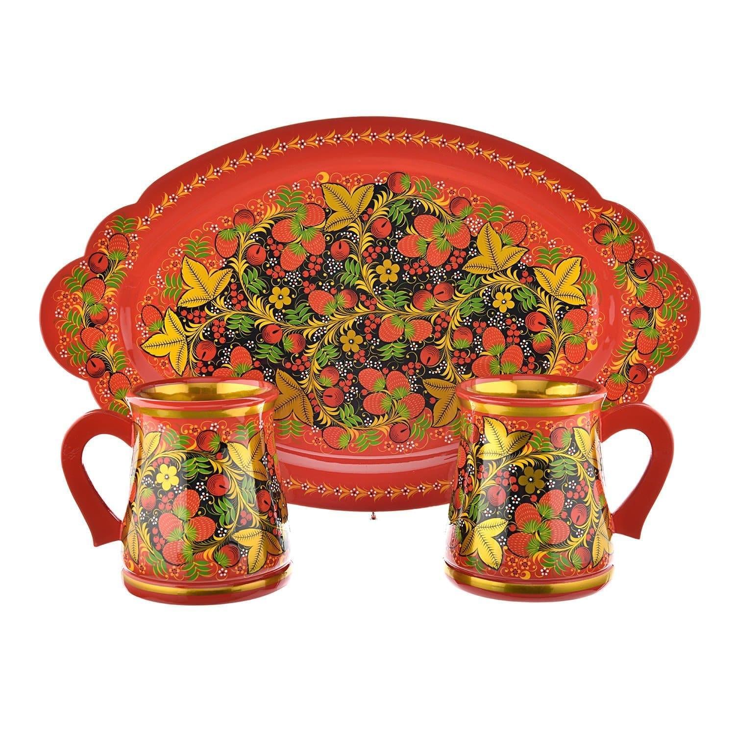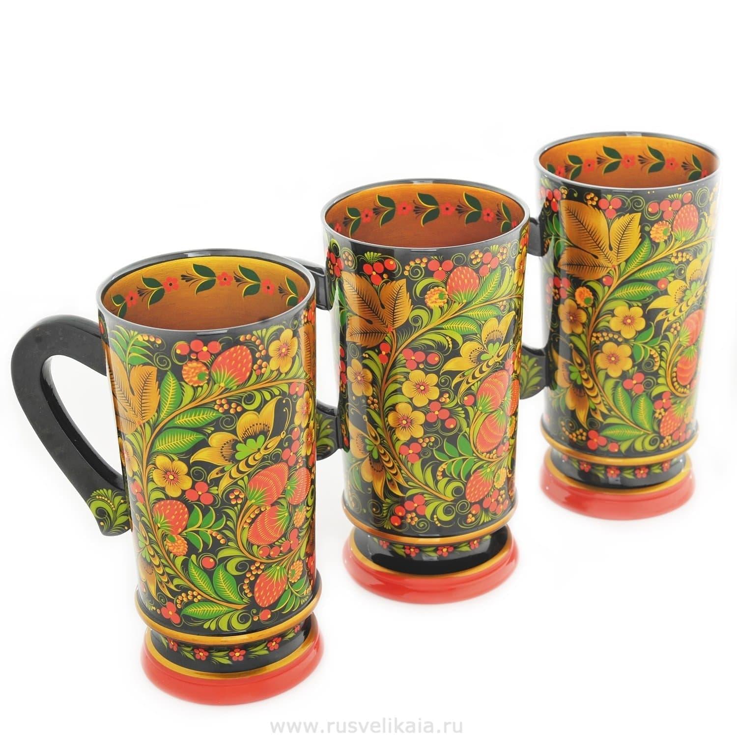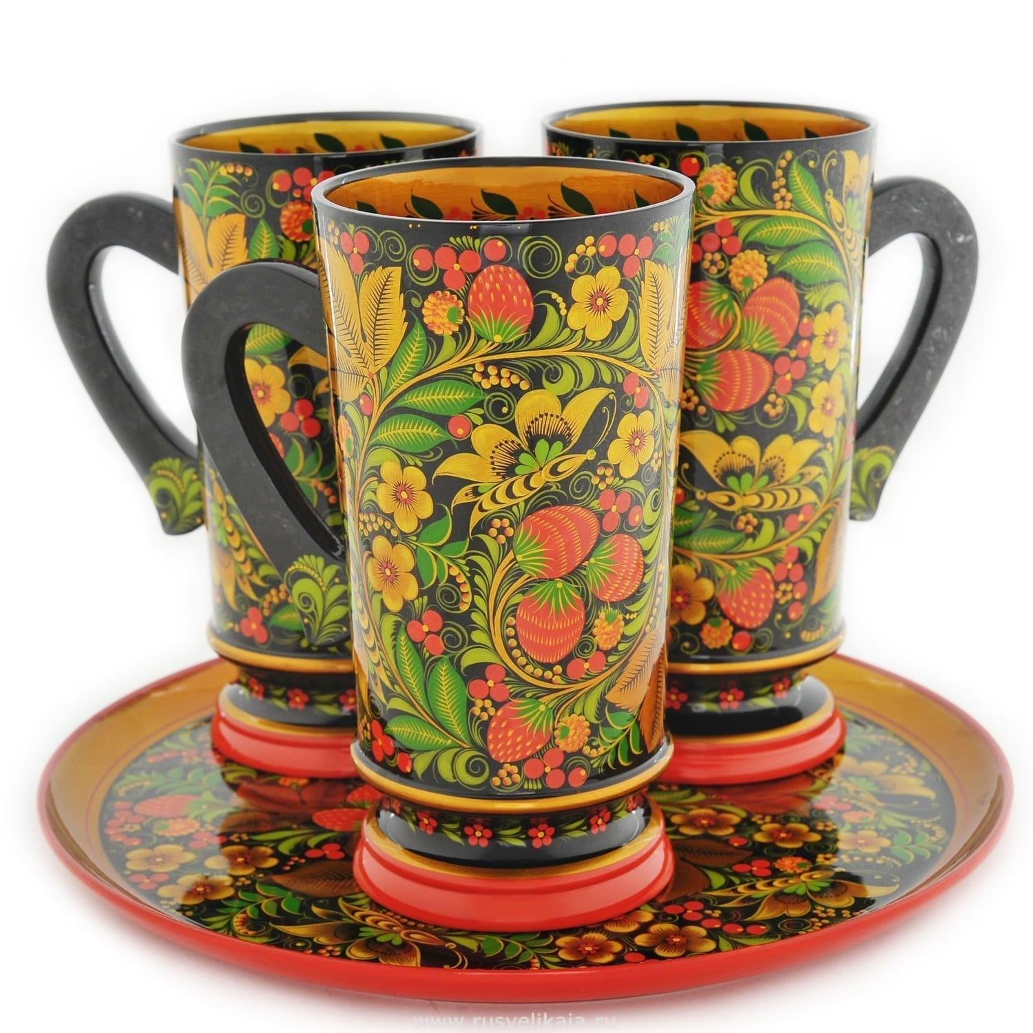 Авторская хохломская роспись зародилась около 4 столетий тому назад в монастырях под Нижним Новгородом, ее сложная и трудоемкая техника берет начало в русско-византийской иконописи. Эксклюзивная авторская работа, набор для пива Хохлома станет прекрасным подарком в русском стиле для ценителя посуды речной работы, коллекционера лучших образцов декоративно-прикладного искусства на Юбилей, Свадьбу, Новоселье, День рождения, общий или личный праздник.