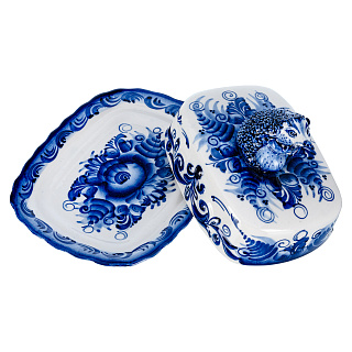 Фарфоровая масленка прямоугольная «Кобальтовая сетка». ИФЗ