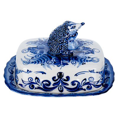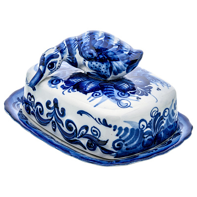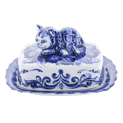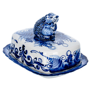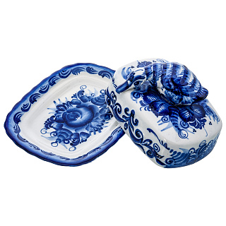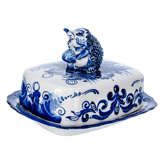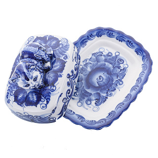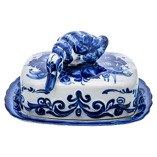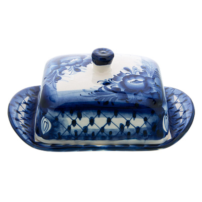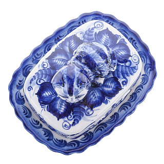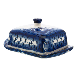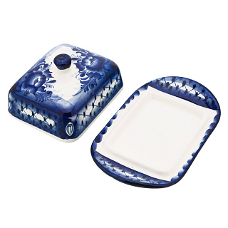 Фарфоровая масленка прямоугольная «Кобальтовая клетка» ИФЗ