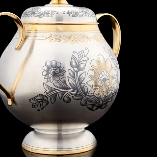 Чайный сервиз с позолотой и эмалью на 4 персоны «Купеческий». Златоуст