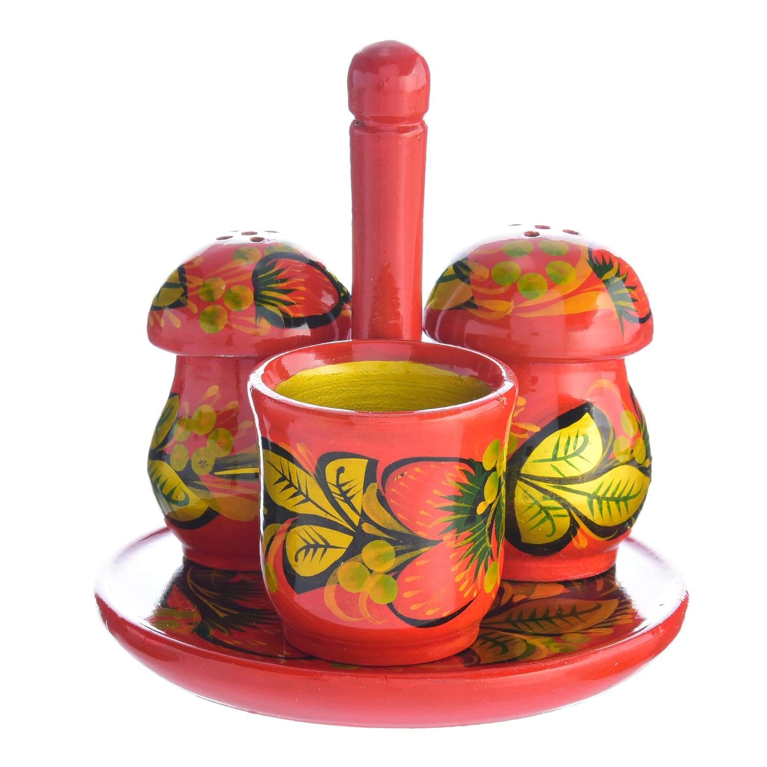 В дополнение к набору для специй с хохломской росписью Вы можете приобрести конфетницу, салатницу или масленку с хохломской росписью. Полная коллекция деревянной посуды с традиционной хохломской росписью представлена в отдельном разделе на сайте «Руси Великой».
