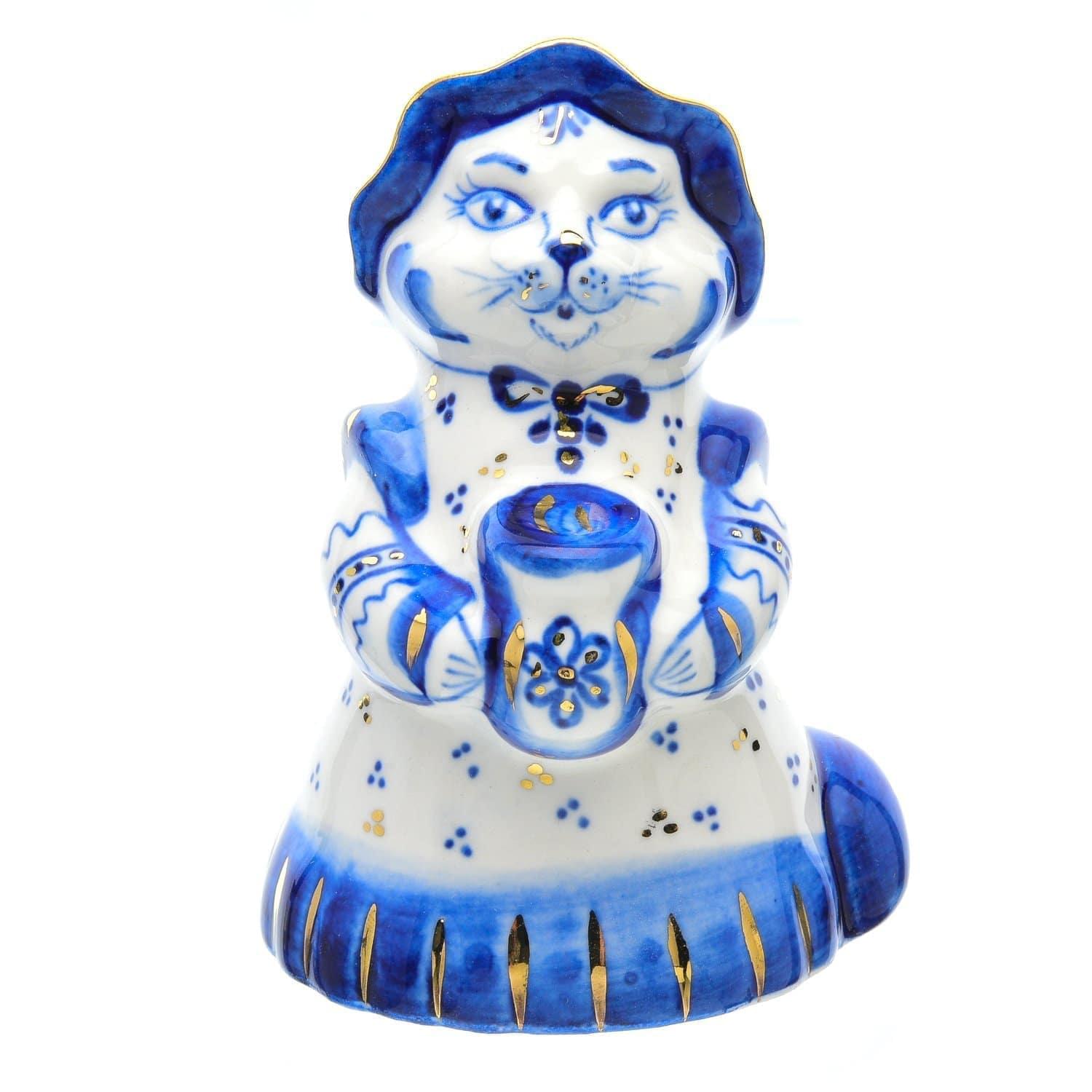 Фигурный корпус каждого предмета создан мастером по авторскому эскизу и расписан им же от руки в технике свободной росписи посредством широкой кисти сочными мазками без предварительного нанесения рисунка. Для росписи, по традиции, использована окись кобальта - безвредная краска, которая после нескольких обжигов в печи приобретает синий цвет с более чем 40 его оттенками.