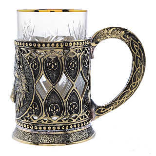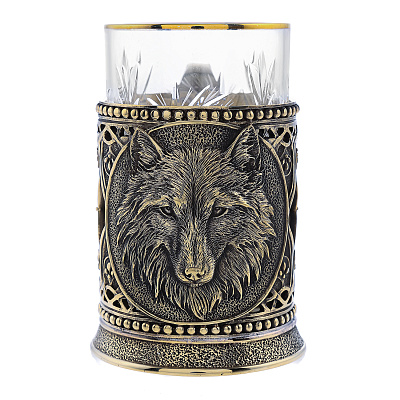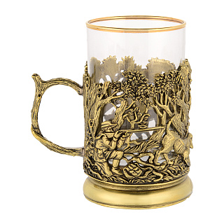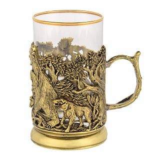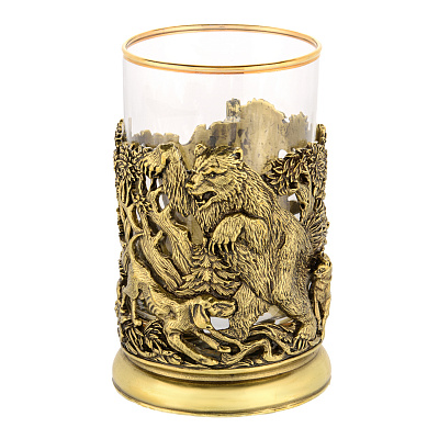 Подстаканник латунный с добавлением бронзы «Охота на кабана»