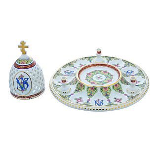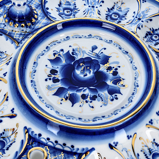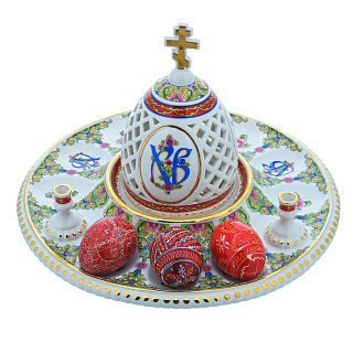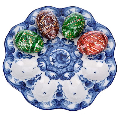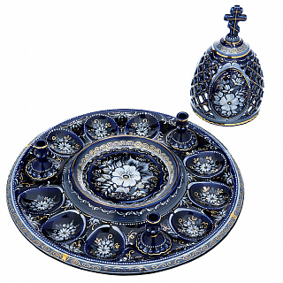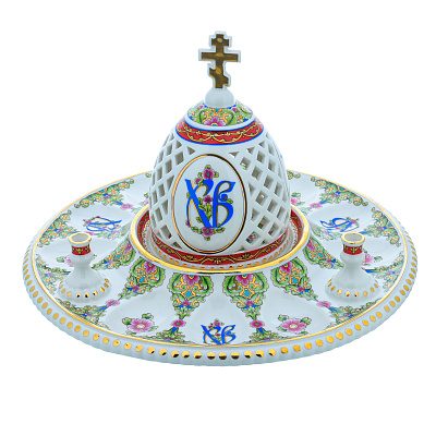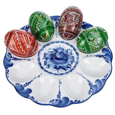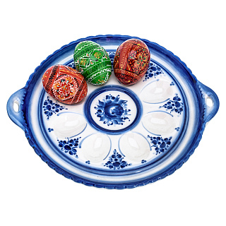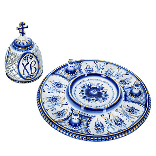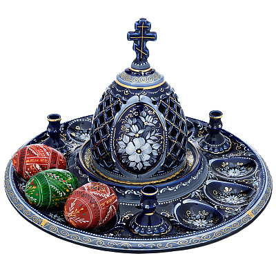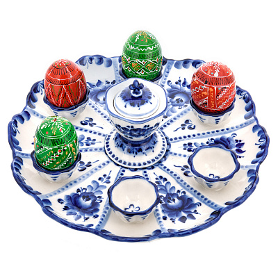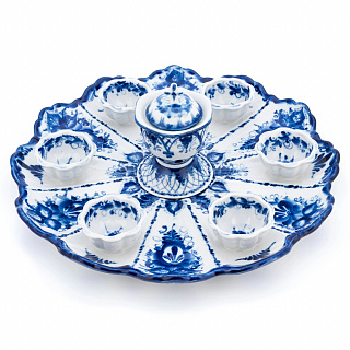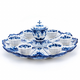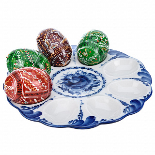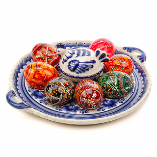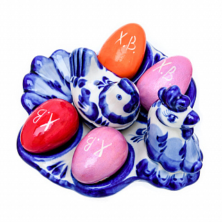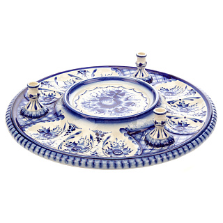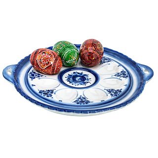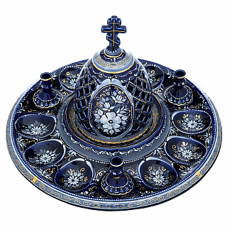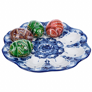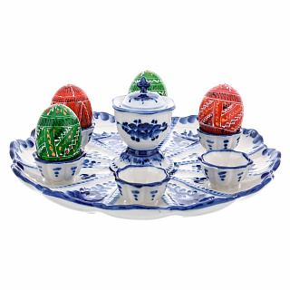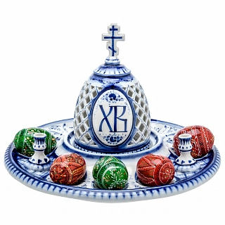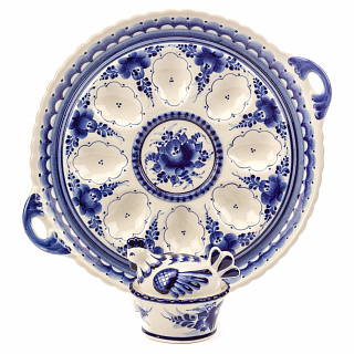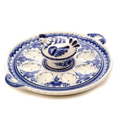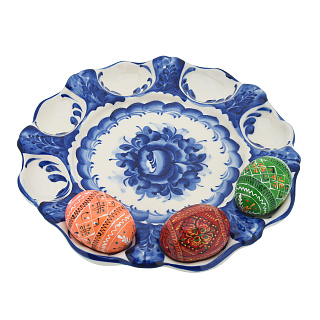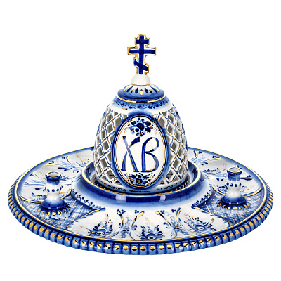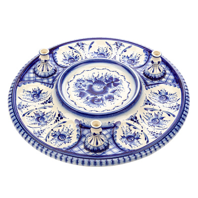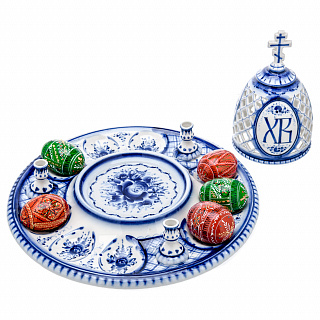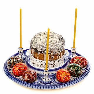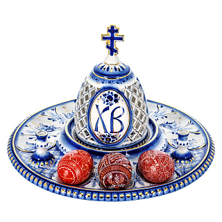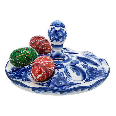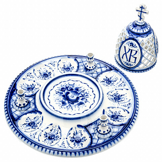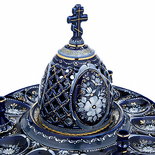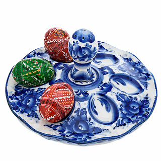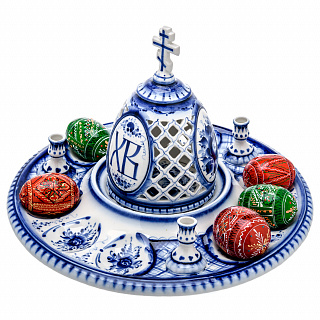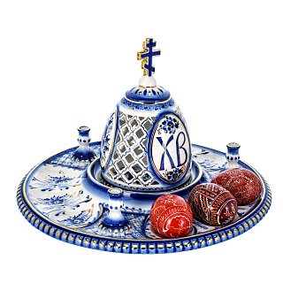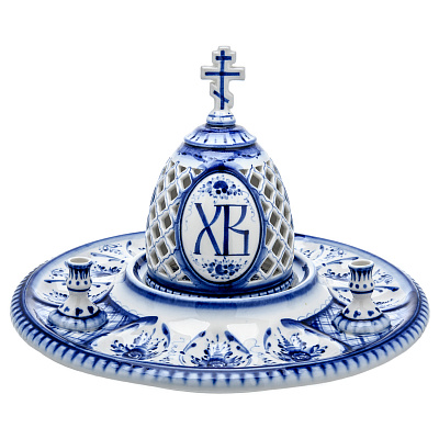 Пасхальница на 9 яиц и 3 свечи «Пасхалия». Гжель