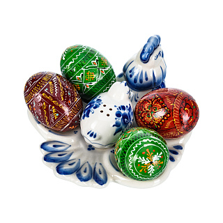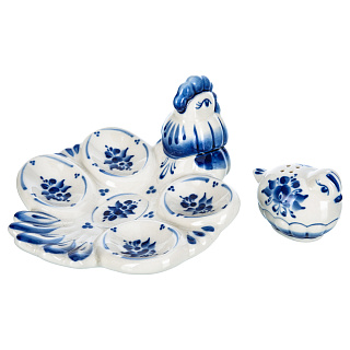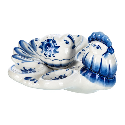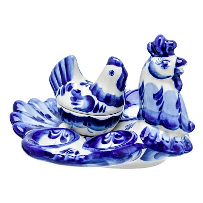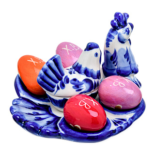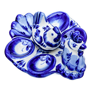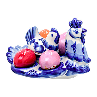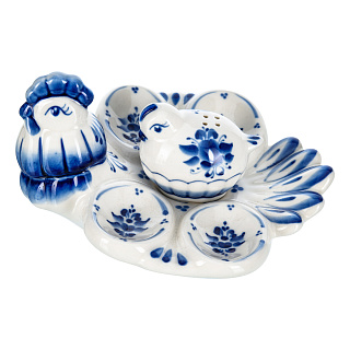 Пасхальница на 4 яйца «Курочка» с солонкой. Гжель