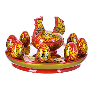 Пасхальница на 9 яиц «Морозко». Гжель в золоте