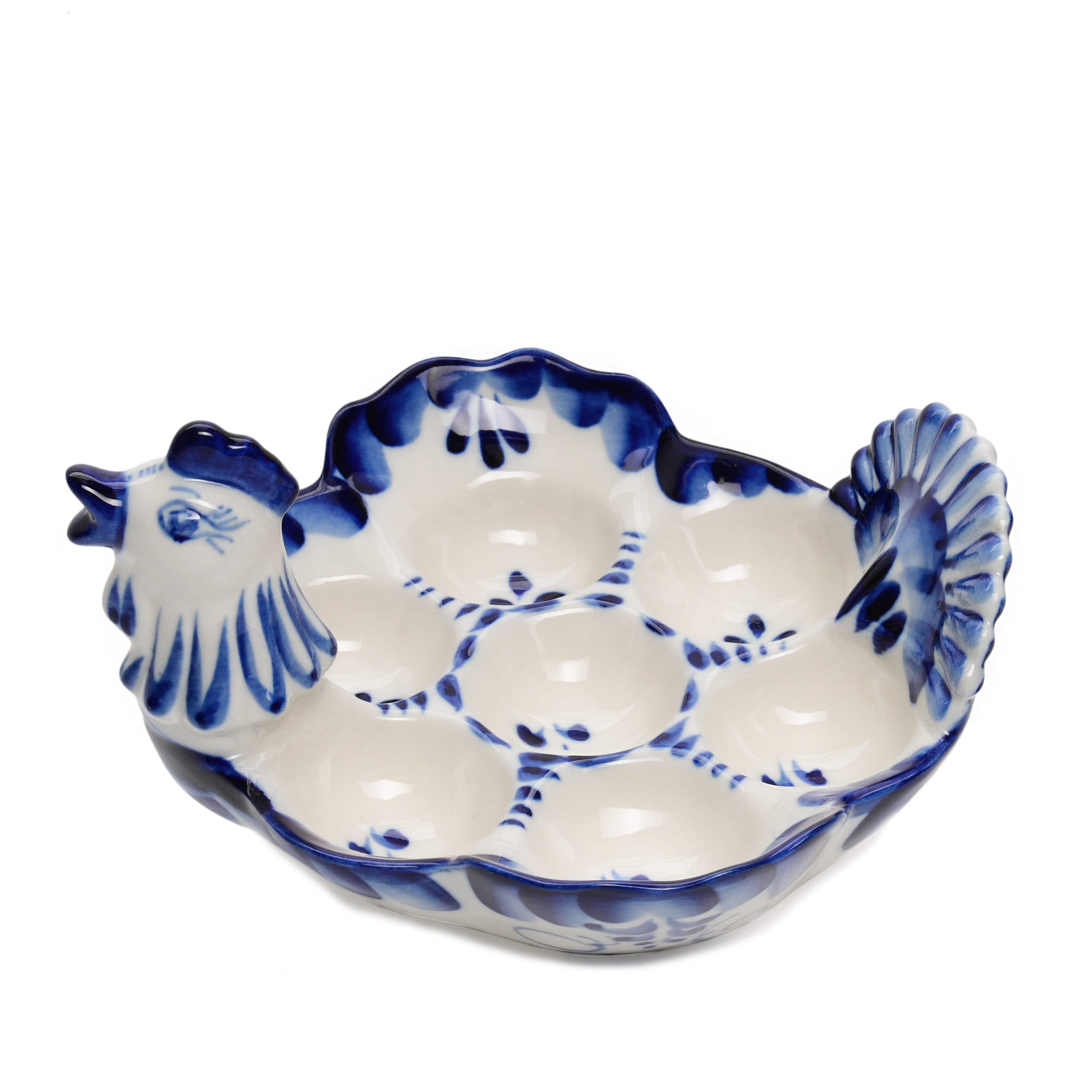 Позаботьтесь о сервировке праздничного стола заранее! Отличным дополнением праздничного стола на Пасху может стать красивая пасхальница, блюдо с ярким дизайном. Аксессуар изготовлен из высококачественного фарфора по традиционной технологии. Тарелка разделена на несколько секций под яйца. Пасхальница расписана в традиционном стиле настоящей Гжельской росписью в технике подглазурного кобальта. Красивое пасхальное блюдо из фарфора станет хорошим памятным подарком хозяйке, умеющей ценить качественную посуду. В нашей галерее Вы найдете отличный фарфоровый подарок на любой вкус: от миниатюрных статуэток и фигурок до эксклюзивной посуды, ваз и скульптурных композиций.