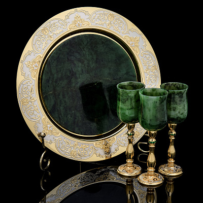 Питейный водочный набор на 3 персоны «Нефрит». Златоуст