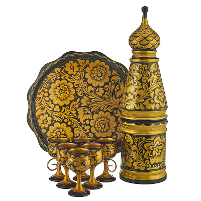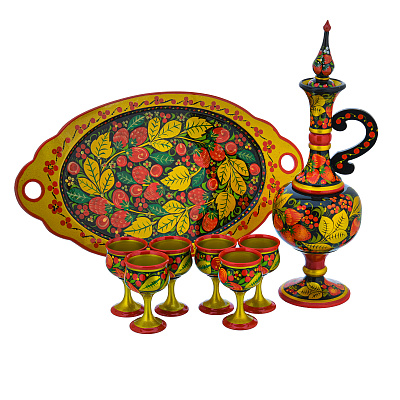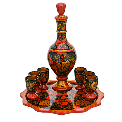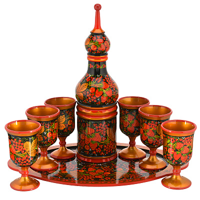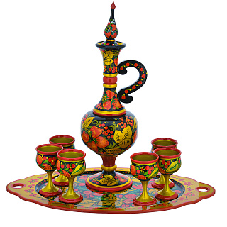 Питейный набор для вина на 6 персон «Предание старины». Хохлома