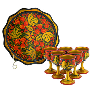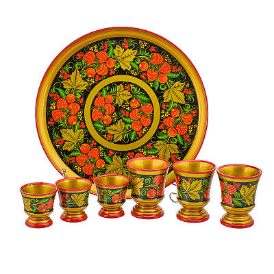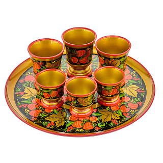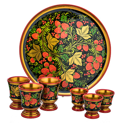 Питейный набор на 6 персон «Ягоды». Хохлома