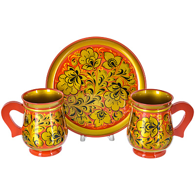 Питейный набор для пива «Золотая кудрина». Хохлома