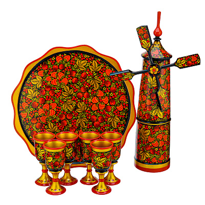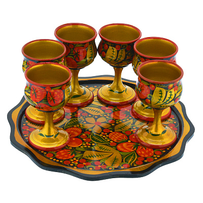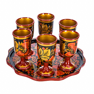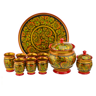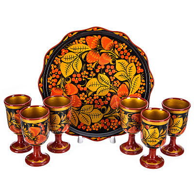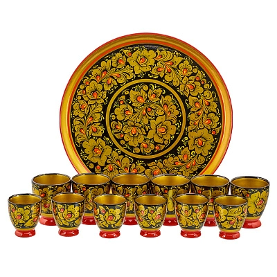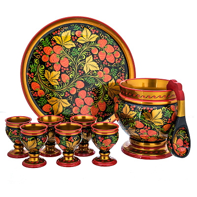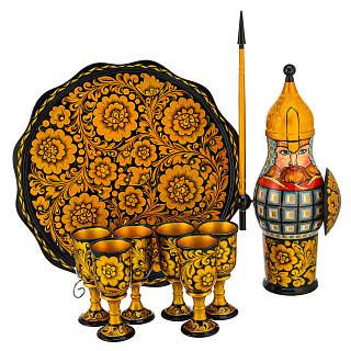 Питейный набор на 6 персон «Богатырь». Хохлома