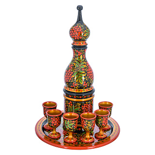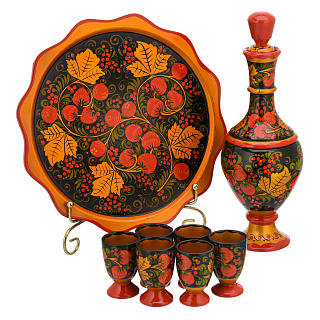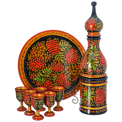 Питейный водочный набор на 6 персон «Рябина». Хохлома