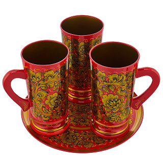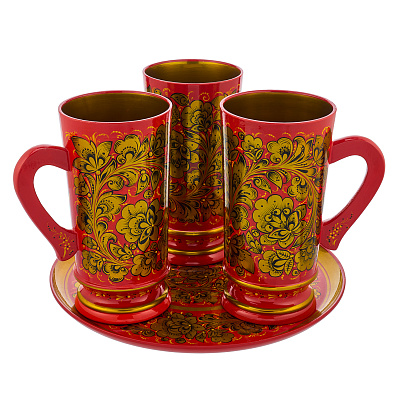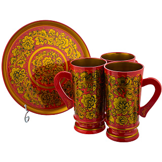 Питейный набор для пива «Кудрина». Хохлома