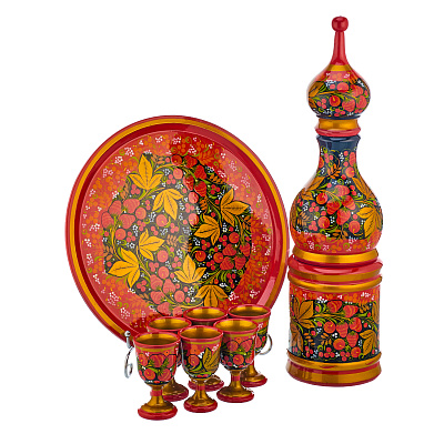 Питейный набор для вина на 6 персон. Хохлома