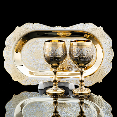 0055994/6273 Златоуст НАБОР(Лоток ср, 2 рюмки малых) NAW-6273
