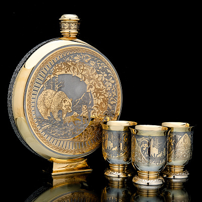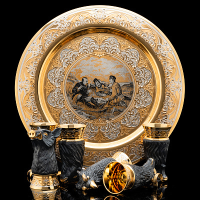 Питейный набор на 3 персоны «Лучший охотник». Златоуст