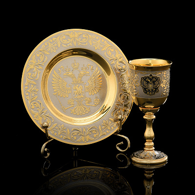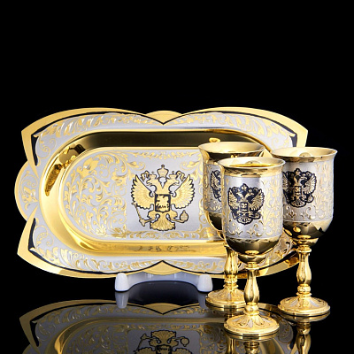 Питейный набор на 2 персоны «Герб РФ». Златоуст