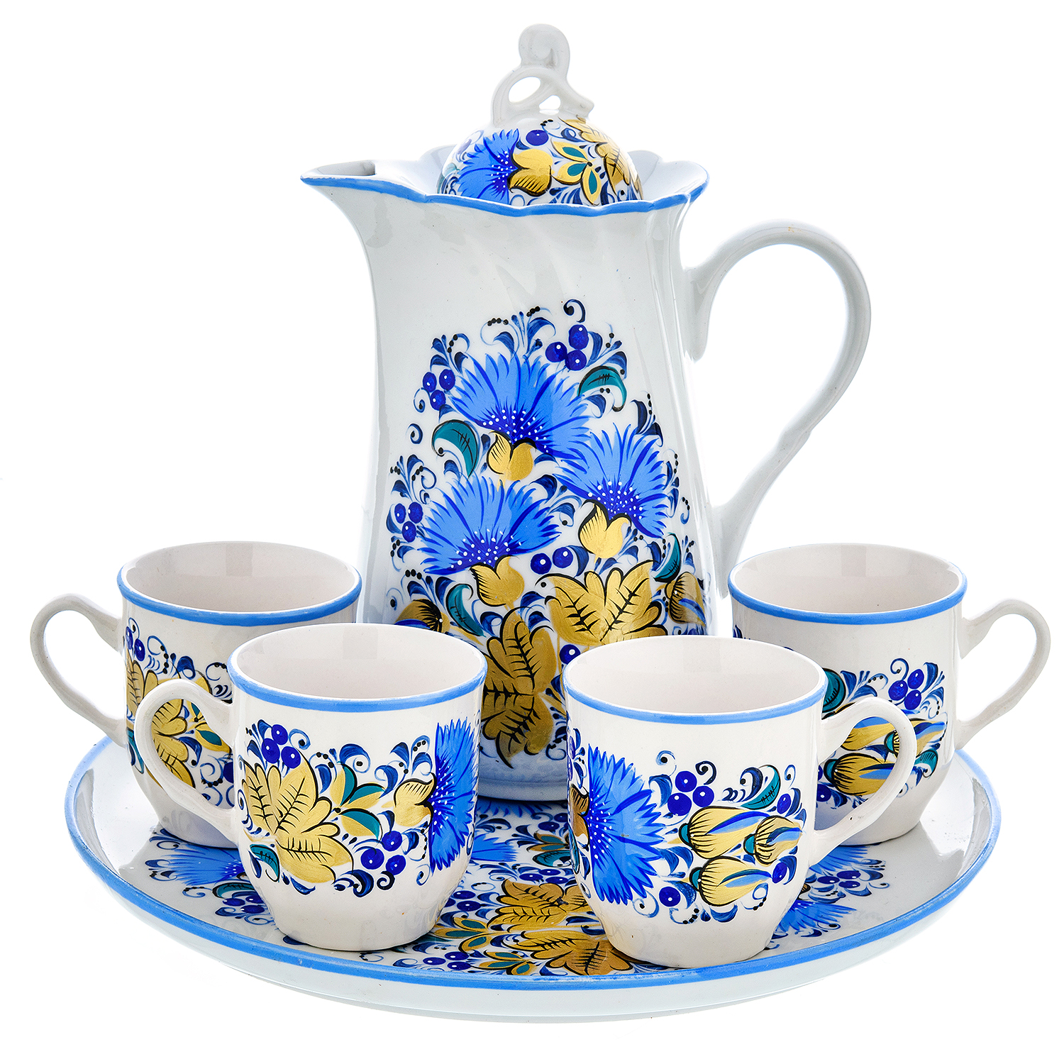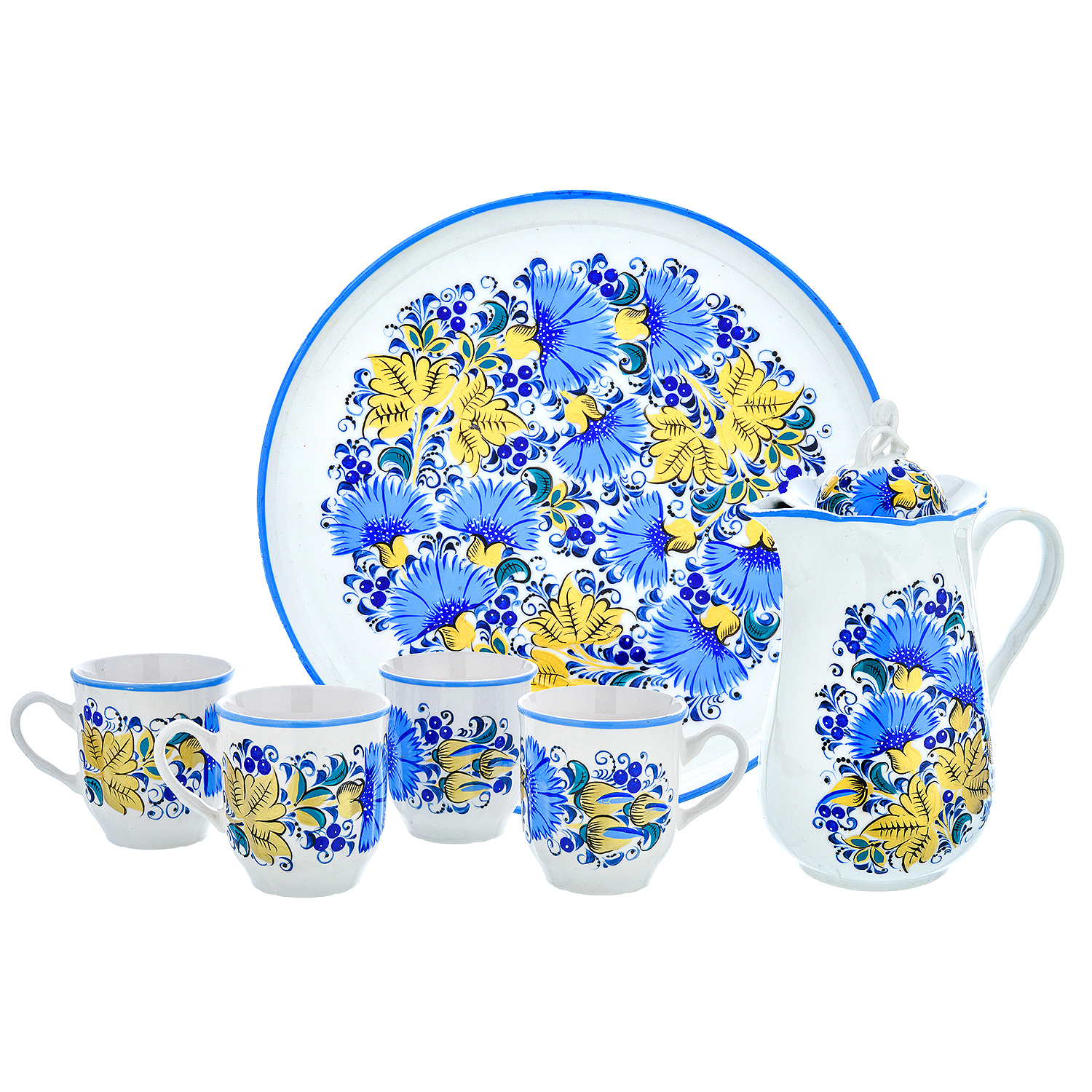 Штоф со стопками «Календарь. День Пожарной Охраны». Гжель