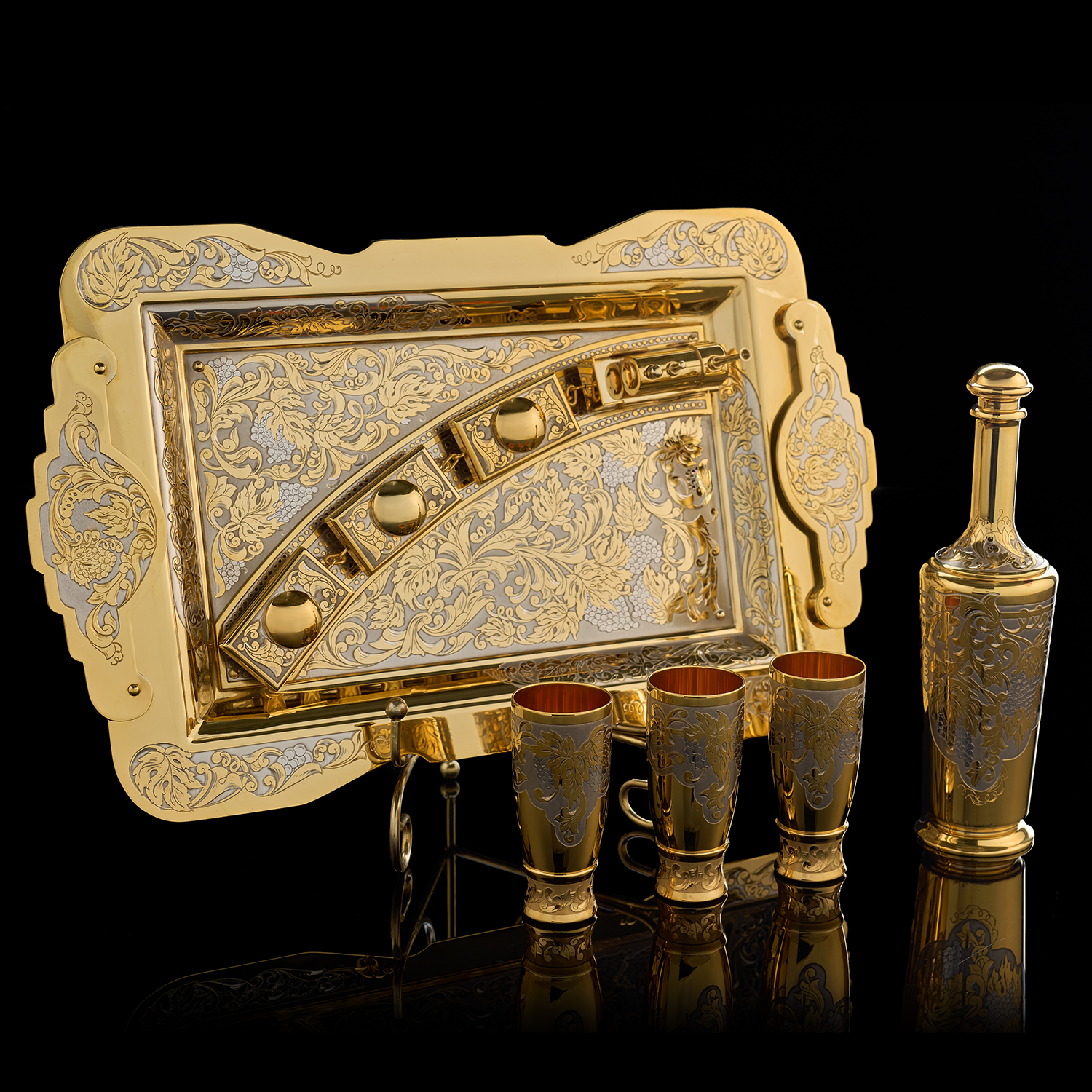 Питейный набор на 3 персоны "Паровоз". Златоуст.