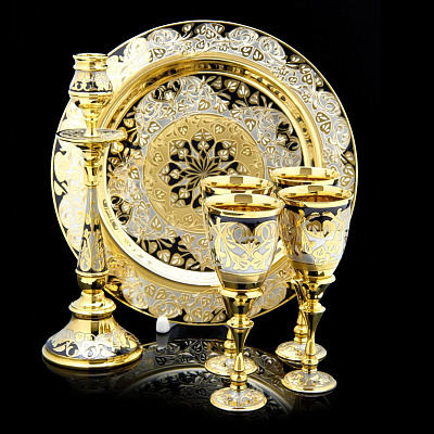 Питейные наборы позолоченные златоустовские для вина на 4 персоны