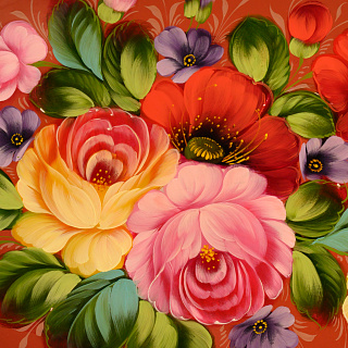 Поднос с авторской росписью «Цветы» 44х44 см