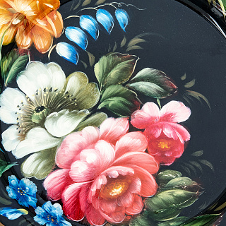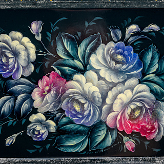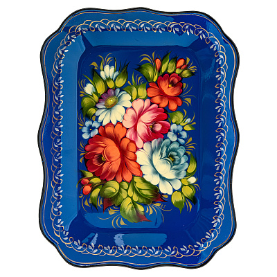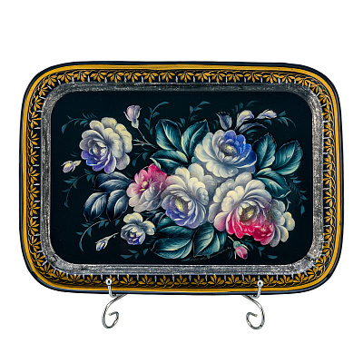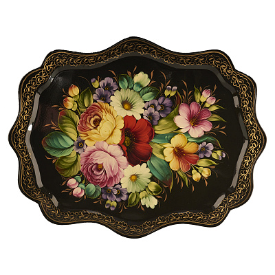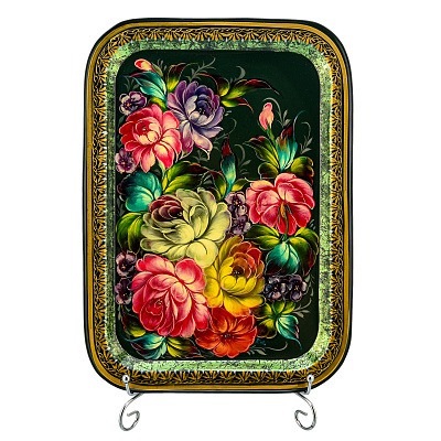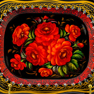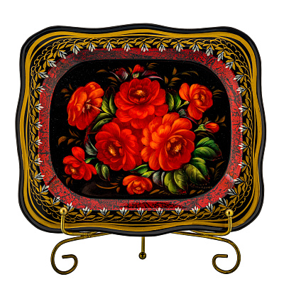 Магазин «Русь Великая» жостовские подносы предлагает в широчайшем ассортименте. Приходите в наш выставочный зал, особенно, если надо подарок иностранцу подобрать. Красавец-поднос в статусе изделия народного промысла, да с богатой историей, идеально на эту роль подойдет. Да и украшением интерьера вручную сделанное изделие станет превосходным: объёмный, яркий рисунок надолго завораживает взор. А если в век высоких технологий приходить за покупками вы отвыкли, наш интернет-магазин будет рад распахнуть для вас свои цифровые двери и все услуги, от подбора товара до его упаковки и доставки предложить.