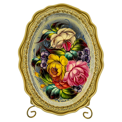 Производство жостовских подносов уже давно обладает статусом народного промысла России. Казалось бы, что может быть такого необычного, из ряда вон выходящего, в металлических подносах, разукрашенных цветами, птицами и ягодами? Однако, при взгляде на эти подносы, возникает какое-то необычное ощущение, будто сейчас всколыхнутся все эти пионы, розы и жасмин, запоют соловьи и заволочет всё вокруг терпким летнем зноем. Это если на подносе летняя композиция с пышными садовыми цветами. А если снегирь сидит на усыпанной алыми ягодами рябине, весь нахохлившийся, красную грудку распушивший, то кажется, будто мороз за щеки пощипывает да посмеивается над людской зябкостью, да робостью. А если на подносе глухарь в току будущую возлюбленную завлекает, то невольно и замрёшь, и дыхание задержишь, даже если на глухариной охоте не то что не был, а и не слышал ни разу, что только токующий глухарь ничего вокруг не слышит. Загадка эти подносы. И в чем разгадка кроется, никто пока не знает. Быть может, в технике послойного нанесения рисунка, благодаря которому изображение то ли над поверхностью парит, то ли в фоновой глубине притаилось. И кажется, что если сейчас руку к этому петуху, яркими красками выписанному, протянуть, так перья мягкие под пальцами и окажутся. Или разгадка в ауре секретности, которая каждый рисунок окружает, тайна ведь до самого нанесения на металлическую заготовку сохраняется. Так уж издавна повелось, что художники друг с другом с самых первых лет соперничали, чей рисунок краше, да необычнее, что жостовскому промыслу только на пользу пошло. Или может волшебство в том факте заключается, что каждый поднос вручную делается: куётся по старинной методике, потом роспись наносится. И каждая деталь, конечно, под самым пристальным вниманием мастера, от замалёвка – так называют самый первый слой росписи, - до ручной обработки края изделия. Ежели заинтересовали вас удивительные подносы расписные, то купить их предлагает дом подарков «Русь Великая». Приобрести такую диковинку можно даже с доставкой. Привезут заказ и в Москву, и в Петербург и в любой другой город России.