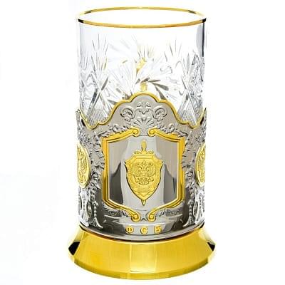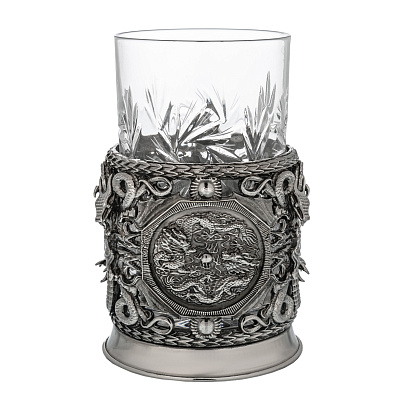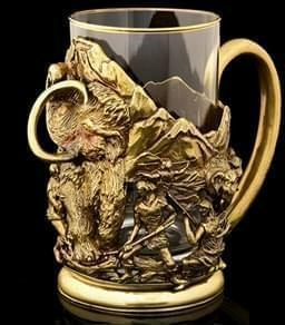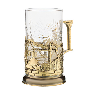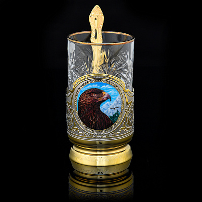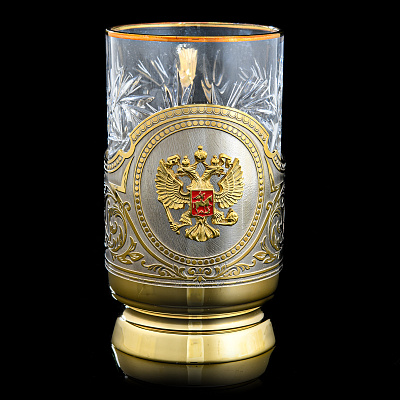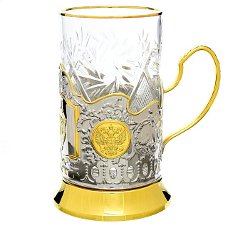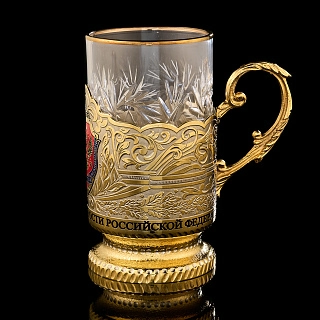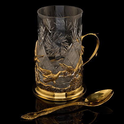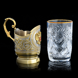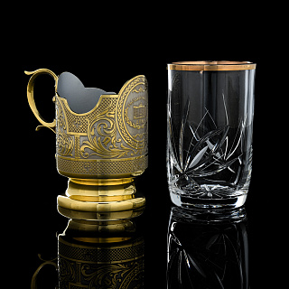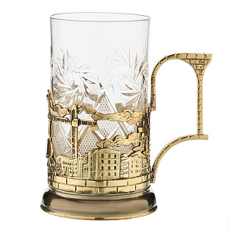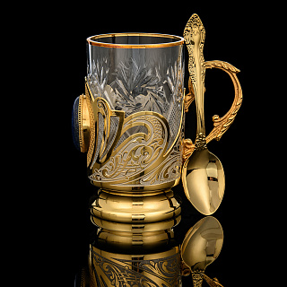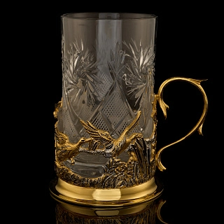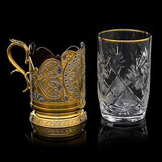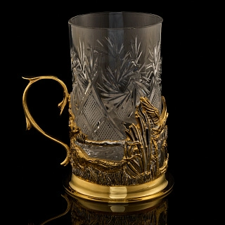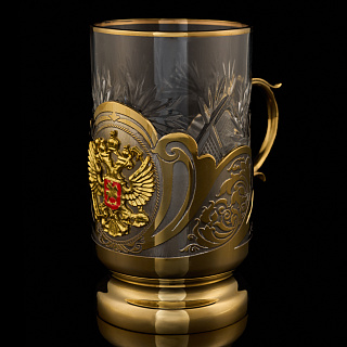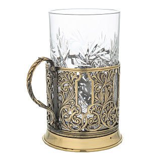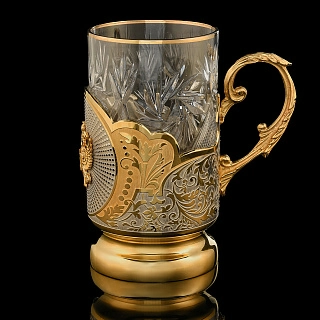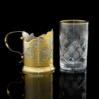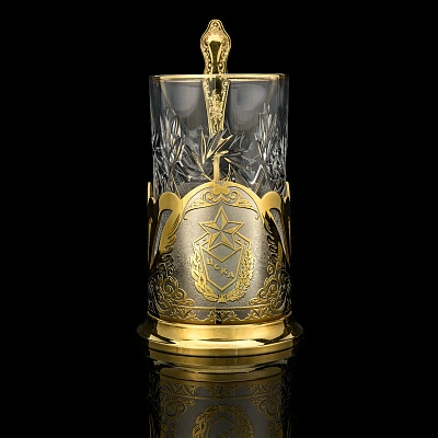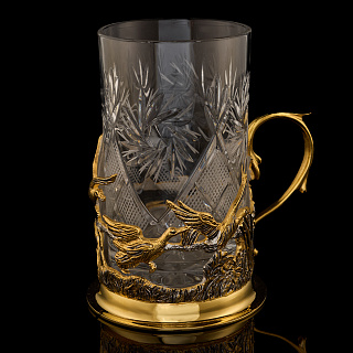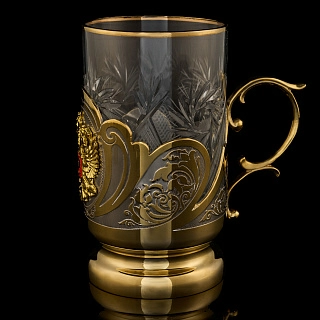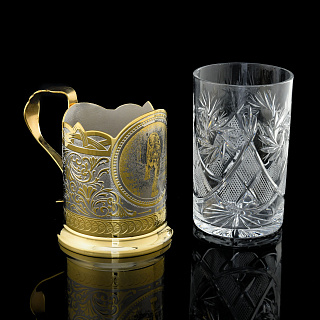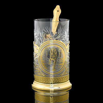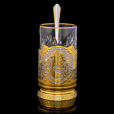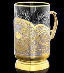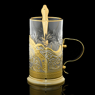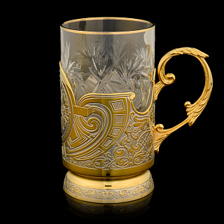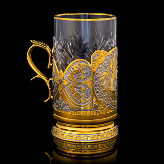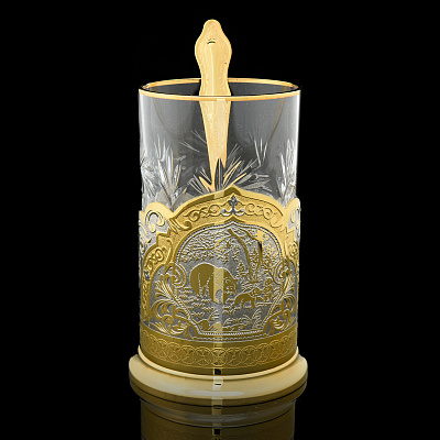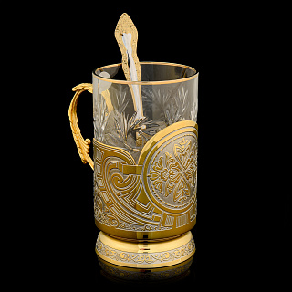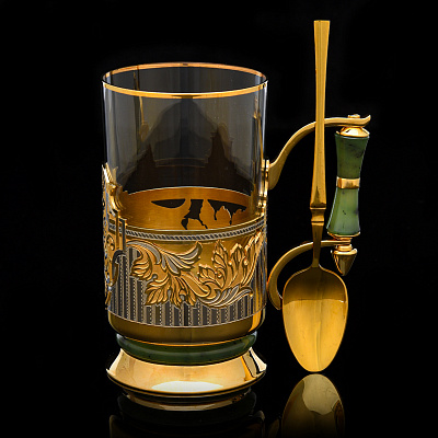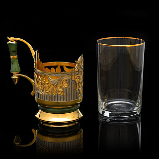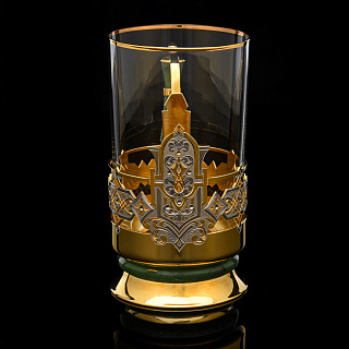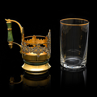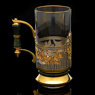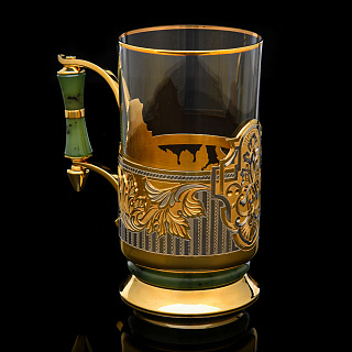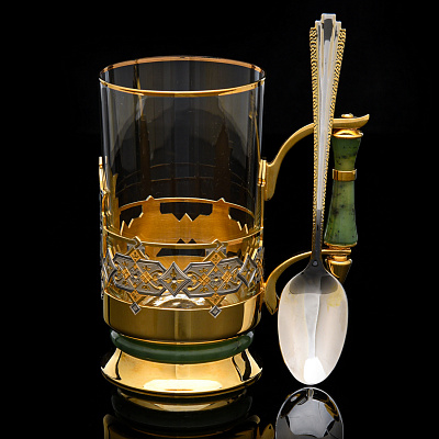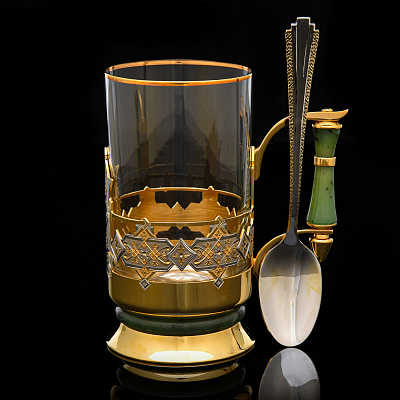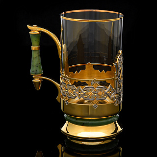 Подстаканник с золочением и нефритом «Орнамент». Златоуст