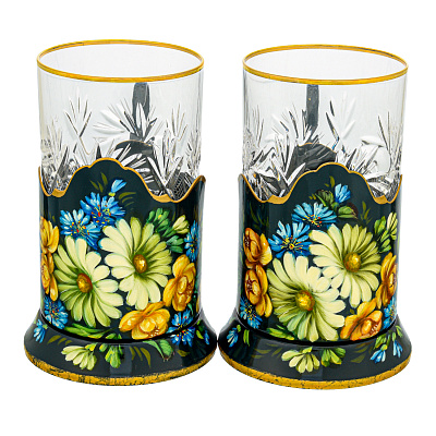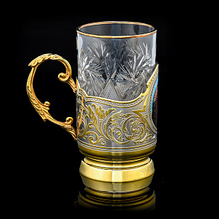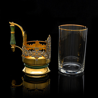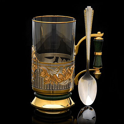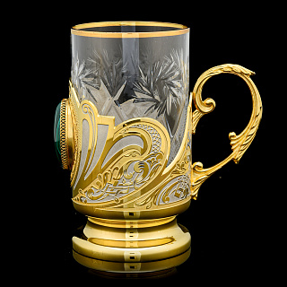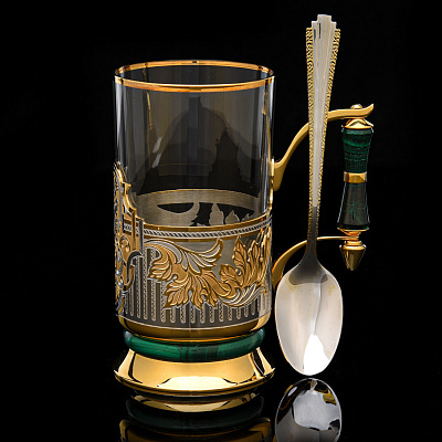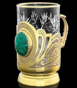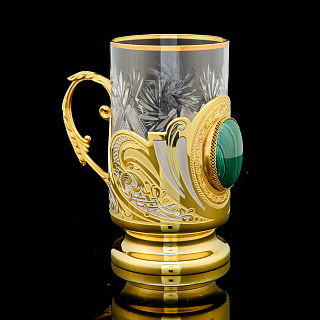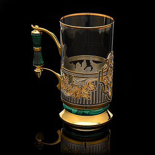 Подстаканник с золочением и малахитом «Орнамент». Златоуст