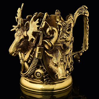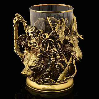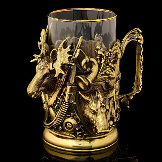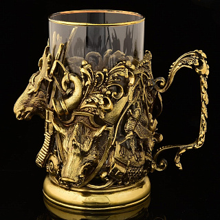 Подстаканник латунный с добавлением бронзы «Охота на кабана»
